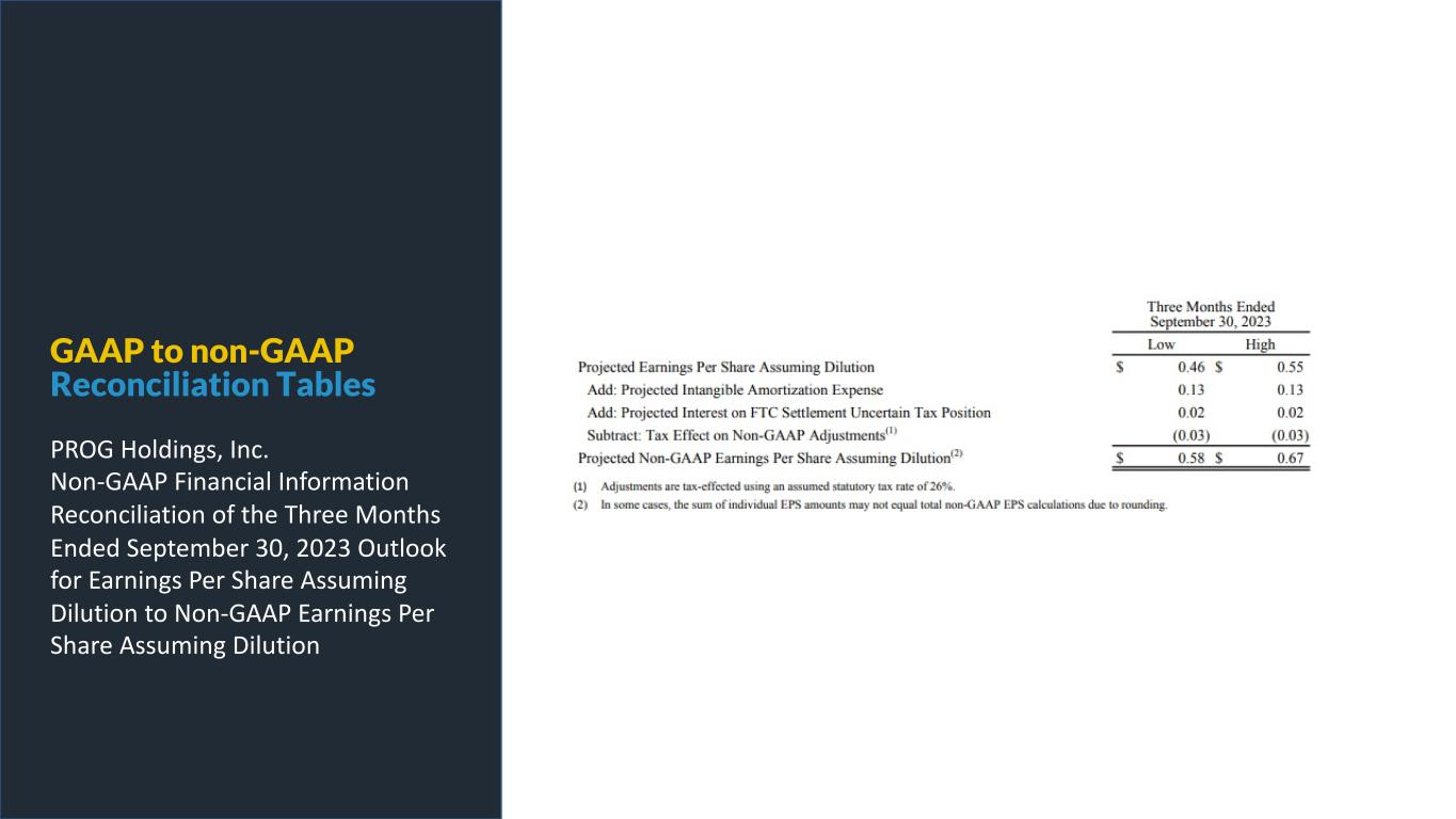GAAP to non-GAAP Reconciliation Tables PROG Holdings, Inc. Non-GAAP Financial Information Reconciliation of the Three Months Ended September 30, 2023 Outlook for Earnings Per Share Assuming Dilution to Non-GAAP Earnings Per Share Assuming Dilution