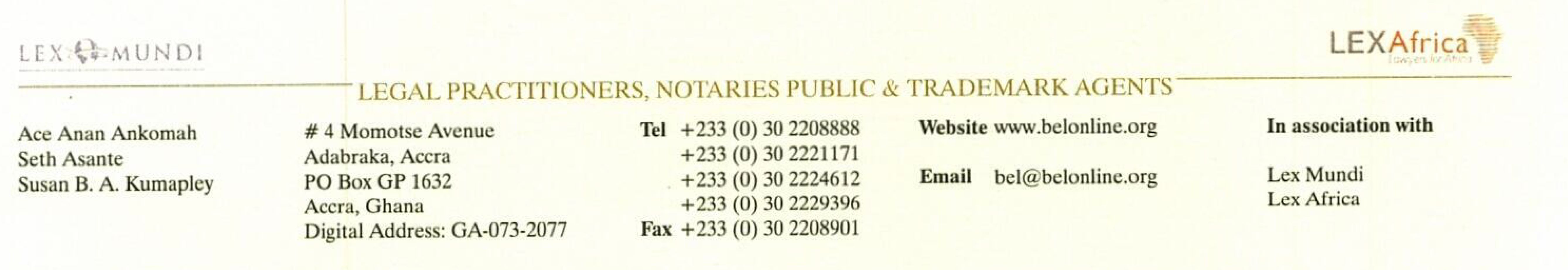 Bentsi-Enchill, Letsa & Ankomah (BELA) is acting as Legal Advisers (as defined) to NewCo and AGA in respect of matters related to Ghanaian law.