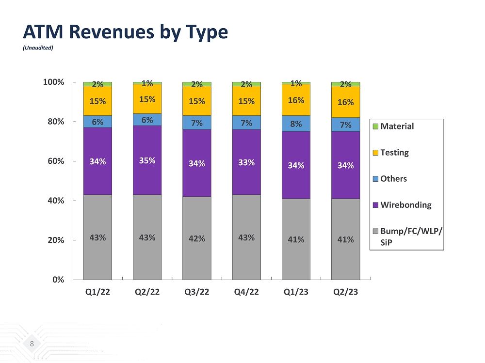 ATM Revenues by Application (Unaudited) 7 52% 52% 53% 53% 50% 49% 16% 16% 16% 16% 17% 18% 32% 32% 31% 31% 33% 33% 0% 20% 40% 60% 80% 100% Q1/22 Q2/22 Q3/22 Q4/22 Q1/23 Q2/23 Communication Computing Automotive, Consumer & Others