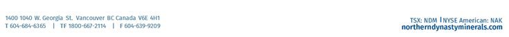 For further details on Northern Dynasty and the Pebble Project, please visit the Company’s website at www.northerndynastyminerals.com or contact Investor services at (604) 684-6365 or within North America at 1-800-667-2114. Review Canadian public filings at www.sedar.com and U.S. public filings at www.sec.gov.