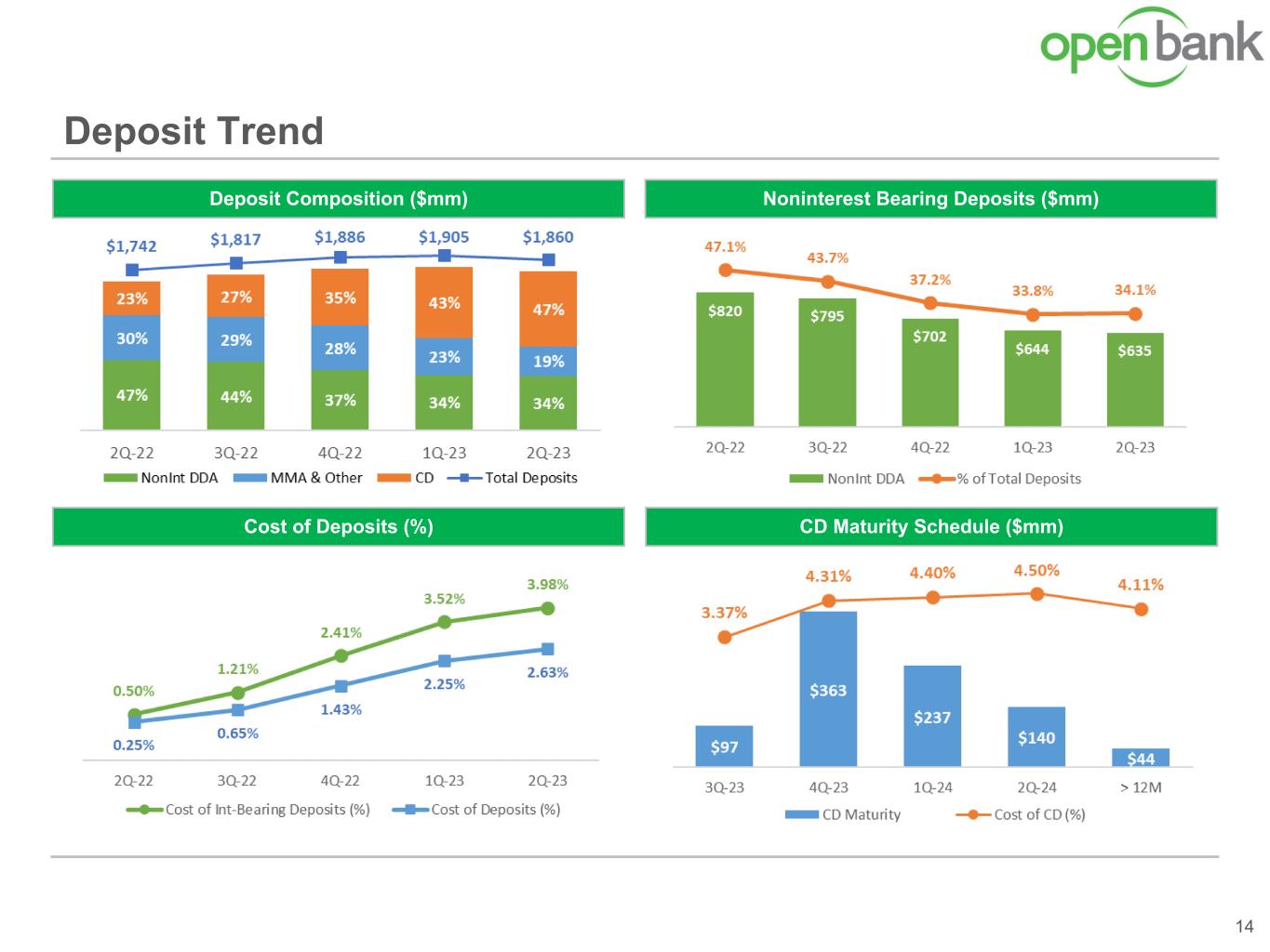 “The migration from noninterest-bearing to interest-bearing deposits has been stabilized during the quarter, and our noninterest-bearing deposits remained at 34% of total deposits. We are truly grateful for our customers’ loyalty and trust throughout these difficult times.