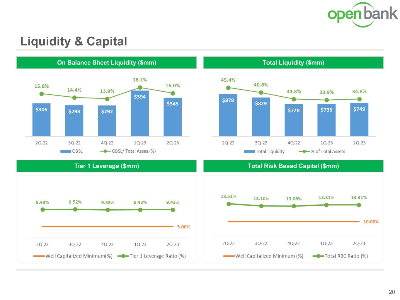 Credit Quality 19 Criticized Loans ($mm)Nonperforming Loans ($mm) Net Charge-Offs ($mm)Allowance for Credit Losses** ($mm) * Exclude the guaranteed portion of SBA loans that are in liquidation. ** Allowance fore credit losses as of June 30, 2023 and March 31, 2023 were calculated under the CECL methodology; prior periods were calculated under the incurred loss methodology.