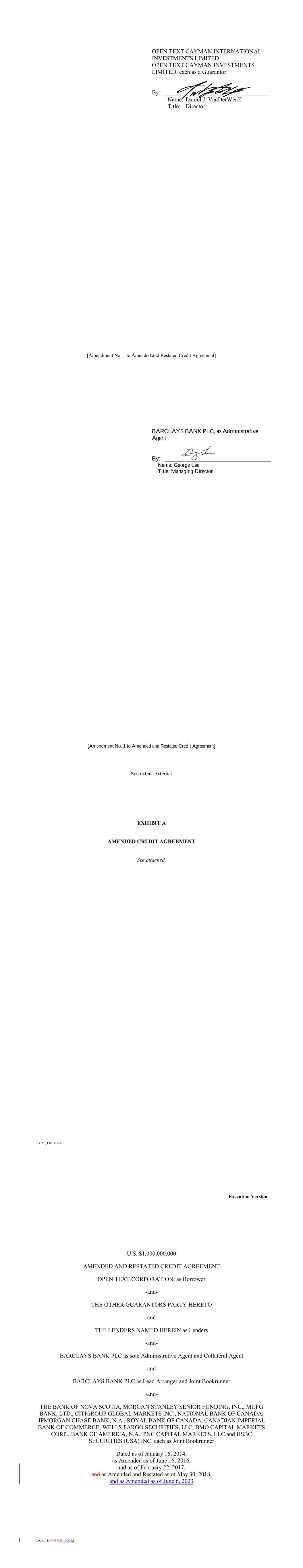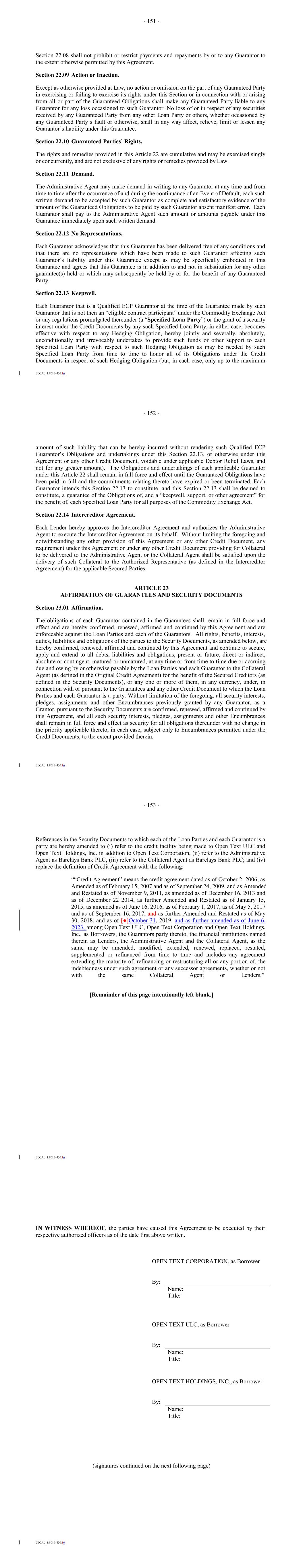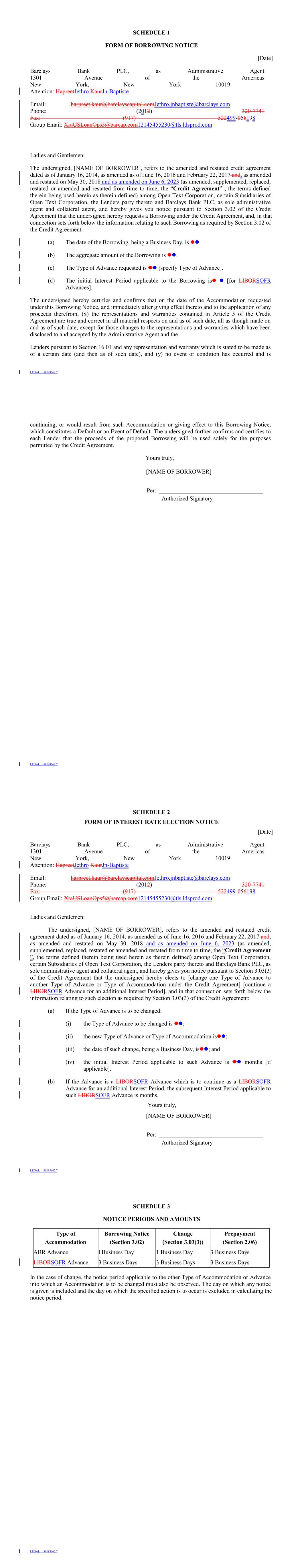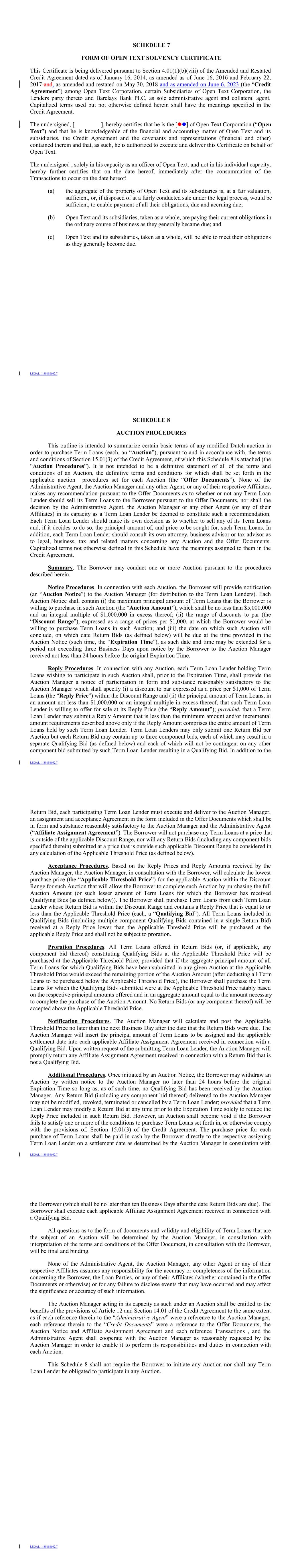 •our report dated August 2, 2023, on the consolidated financial statements of Open Text Corporation (the “Company”), which comprise the consolidated balance sheets as at June 30, 2023 and June 30, 2022, the related consolidated statements of income, comprehensive income, shareholders’ equity and cash flows for each of the years in the three-year period ended June 30, 2023, and the related notes and