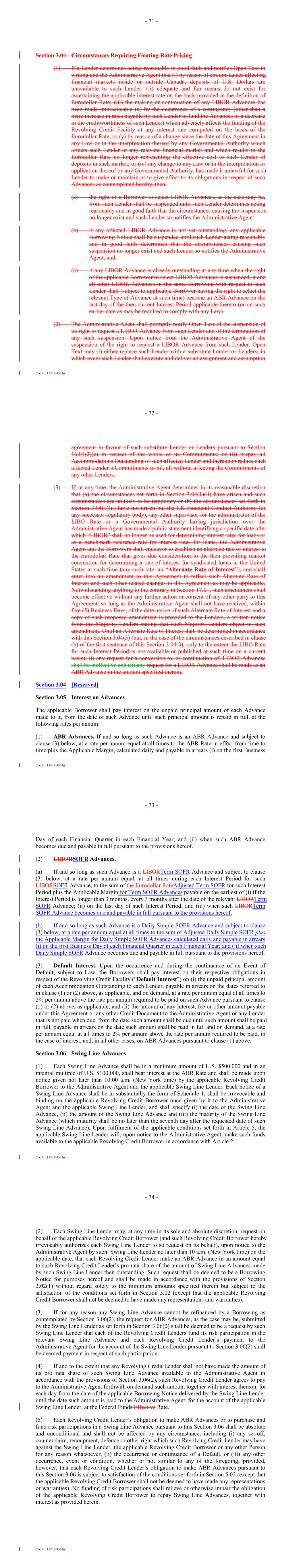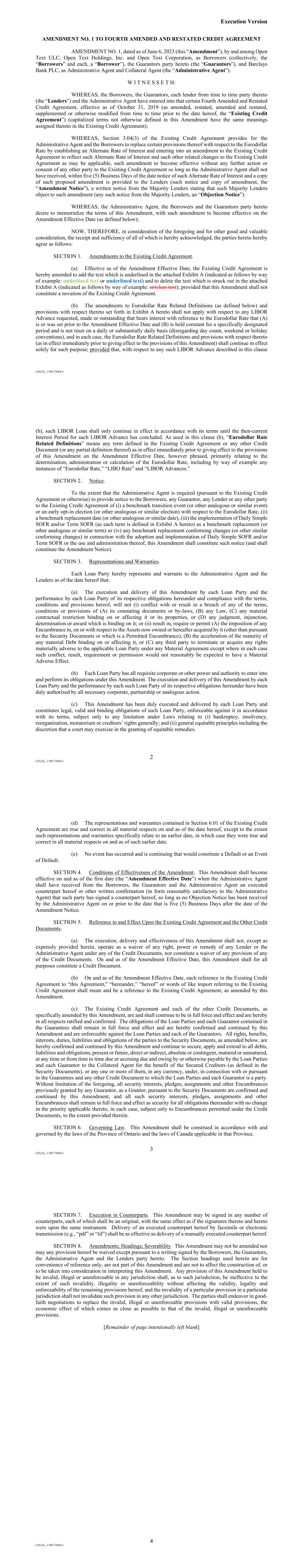 otex-2023063000010026382023FYfalsehttp://opentext.com/20230630#CurrentAccountsPayableAndAccruedLiabilitiesPlusOtherAccrualshttp://opentext.com/20230630#NonCurrentAccountsPayableAndAccruedLiabilitiesPlusOtherAccrualshttp://fasb.org/us-gaap/2023#AccountsPayableAndAccruedLiabilitiesCurrentAndNoncurrentP7YP2Yhttp://fasb.org/us-gaap/2023#LongTermDebtNoncurrenthttp://fasb.org/us-gaap/2023#LongTermDebtNoncurrentP1Mhttp://fasb.org/us-gaap/2023#PrepaidExpenseAndOtherAssetsCurrenthttp://fasb.org/us-gaap/2023#PrepaidExpenseAndOtherAssetsCurrenthttp://fasb.org/us-gaap/2023#InterestIncomeExpenseNethttp://fasb.org/us-gaap/2023#InterestIncomeExpenseNethttp://fasb.org/us-gaap/2023#InterestIncomeExpenseNet00010026382022-07-012023-06-3000010026382022-12-31iso4217:USD00010026382023-07-28xbrli:shares00010026382023-06-3000010026382022-06-300001002638otex:CloudServicesAndSubscriptionsMember2022-07-012023-06-300001002638otex:CloudServicesAndSubscriptionsMember2021-07-012022-06-300001002638otex:CloudServicesAndSubscriptionsMember2020-07-012021-06-300001002638otex:CustomerSupportMember2022-07-012023-06-300001002638otex:CustomerSupportMember2021-07-012022-06-300001002638otex:CustomerSupportMember2020-07-012021-06-300001002638us-gaap:LicenseMember2022-07-012023-06-300001002638us-gaap:LicenseMember2021-07-012022-06-300001002638us-gaap:LicenseMember2020-07-012021-06-300001002638otex:ProfessionalServiceAndOtherMember2022-07-012023-06-300001002638otex:ProfessionalServiceAndOtherMember2021-07-012022-06-300001002638otex:ProfessionalServiceAndOtherMember2020-07-012021-06-3000010026382021-07-012022-06-3000010026382020-07-012021-06-30iso4217:USDxbrli:shares0001002638us-gaap:CommonStockIncludingAdditionalPaidInCapitalMember2020-06-300001002638us-gaap:TreasuryStockCommonMember2020-06-300001002638us-gaap:RetainedEarningsMember2020-06-300001002638us-gaap:AccumulatedOtherComprehensiveIncomeMember2020-06-300001002638us-gaap:NoncontrollingInterestMember2020-06-3000010026382020-06-300001002638us-gaap:RetainedEarningsMembersrt:CumulativeEffectPeriodOfAdoptionAdjustmentMember2020-06-300001002638srt:CumulativeEffectPeriodOfAdoptionAdjustmentMember2020-06-300001002638us-gaap:CommonStockIncludingAdditionalPaidInCapitalMember2020-07-012021-06-300001002638us-gaap:TreasuryStockCommonMember2020-07-012021-06-300001002638us-gaap:RetainedEarningsMember2020-07-012021-06-300001002638us-gaap:AccumulatedOtherComprehensiveIncomeMember2020-07-012021-06-300001002638us-gaap:NoncontrollingInterestMember2020-07-012021-06-300001002638us-gaap:CommonStockIncludingAdditionalPaidInCapitalMember2021-06-300001002638us-gaap:TreasuryStockCommonMember2021-06-300001002638us-gaap:RetainedEarningsMember2021-06-300001002638us-gaap:AccumulatedOtherComprehensiveIncomeMember2021-06-300001002638us-gaap:NoncontrollingInterestMember2021-06-3000010026382021-06-300001002638us-gaap:CommonStockIncludingAdditionalPaidInCapitalMember2021-07-012022-06-300001002638us-gaap:TreasuryStockCommonMember2021-07-012022-06-300001002638us-gaap:RetainedEarningsMember2021-07-012022-06-300001002638us-gaap:AccumulatedOtherComprehensiveIncomeMember2021-07-012022-06-300001002638us-gaap:NoncontrollingInterestMember2021-07-012022-06-300001002638us-gaap:CommonStockIncludingAdditionalPaidInCapitalMember2022-06-300001002638us-gaap:TreasuryStockCommonMember2022-06-300001002638us-gaap:RetainedEarningsMember2022-06-300001002638us-gaap:AccumulatedOtherComprehensiveIncomeMember2022-06-300001002638us-gaap:NoncontrollingInterestMember2022-06-300001002638us-gaap:CommonStockIncludingAdditionalPaidInCapitalMember2022-07-012023-06-300001002638us-gaap:TreasuryStockCommonMember2022-07-012023-06-300001002638us-gaap:RetainedEarningsMember2022-07-012023-06-300001002638us-gaap:AccumulatedOtherComprehensiveIncomeMember2022-07-012023-06-300001002638us-gaap:NoncontrollingInterestMember2022-07-012023-06-300001002638us-gaap:CommonStockIncludingAdditionalPaidInCapitalMember2023-06-300001002638us-gaap:TreasuryStockCommonMember2023-06-300001002638us-gaap:RetainedEarningsMember2023-06-300001002638us-gaap:AccumulatedOtherComprehensiveIncomeMember2023-06-300001002638us-gaap:NoncontrollingInterestMember2023-06-300001002638otex:OpenTextSouthAfricaProprietaryLtdMember2023-06-30xbrli:pure0001002638otex:GXSSingaporeMember2023-06-3000010026382021-07-012021-09-300001002638otex:MicroFocusMember2023-01-312023-01-310001002638us-gaap:SeniorNotesMemberotex:SeniorSecuredNotes2027Member2022-12-010001002638otex:SeniorSecuredNotes2027Memberotex:LondonInterbankOfferedRateLIBOR1Member2022-12-010001002638otex:AcquisitionTermLoanMemberus-gaap:SecuredDebtMemberus-gaap:LineOfCreditMember2023-01-310001002638us-gaap:LineOfCreditMemberus-gaap:RevolvingCreditFacilityMember2023-01-310001002638srt:MinimumMemberus-gaap:FurnitureAndFixturesMember2023-06-300001002638us-gaap:FurnitureAndFixturesMembersrt:MaximumMember2023-06-300001002638srt:MinimumMemberotex:ComputerHardwareMember2023-06-300001002638otex:ComputerHardwareMembersrt:MaximumMember2023-06-300001002638srt:MinimumMemberotex:ComputerSoftwareMember2023-06-300001002638otex:ComputerSoftwareMembersrt:MaximumMember2023-06-300001002638srt:MinimumMemberotex:CapitalizedSoftwareDevelopmentCostsMember2023-06-300001002638otex:CapitalizedSoftwareDevelopmentCostsMembersrt:MaximumMember2023-06-300001002638us-gaap:LeaseholdImprovementsMember2023-06-300001002638us-gaap:BuildingMember2023-06-300001002638srt:MinimumMember2023-06-300001002638srt:MaximumMember2023-06-300001002638otex:CapitalizedSoftwareDevelopmentCostsMember2023-06-300001002638otex:CapitalizedSoftwareDevelopmentCostsMember2022-06-300001002638otex:CapitalizedSoftwareDevelopmentCostsMember2022-07-012023-06-300001002638otex:CapitalizedSoftwareDevelopmentCostsMember2021-07-012022-06-30otex:revenueStream0001002638srt:MinimumMember2022-07-012023-06-300001002638srt:MaximumMember2022-07-012023-06-300001002638srt:MinimumMemberotex:LimitedPartnerInvestmentsMember2023-06-300001002638otex:LimitedPartnerInvestmentsMembersrt:MaximumMember2023-06-300001002638us-gaap:O