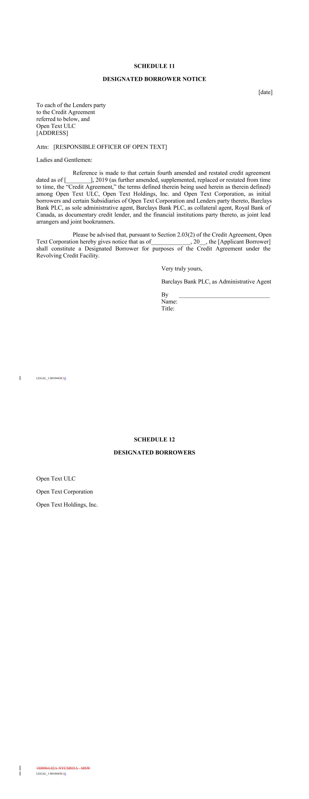 | Open Text SA ULC | Nova Scotia, Canada |