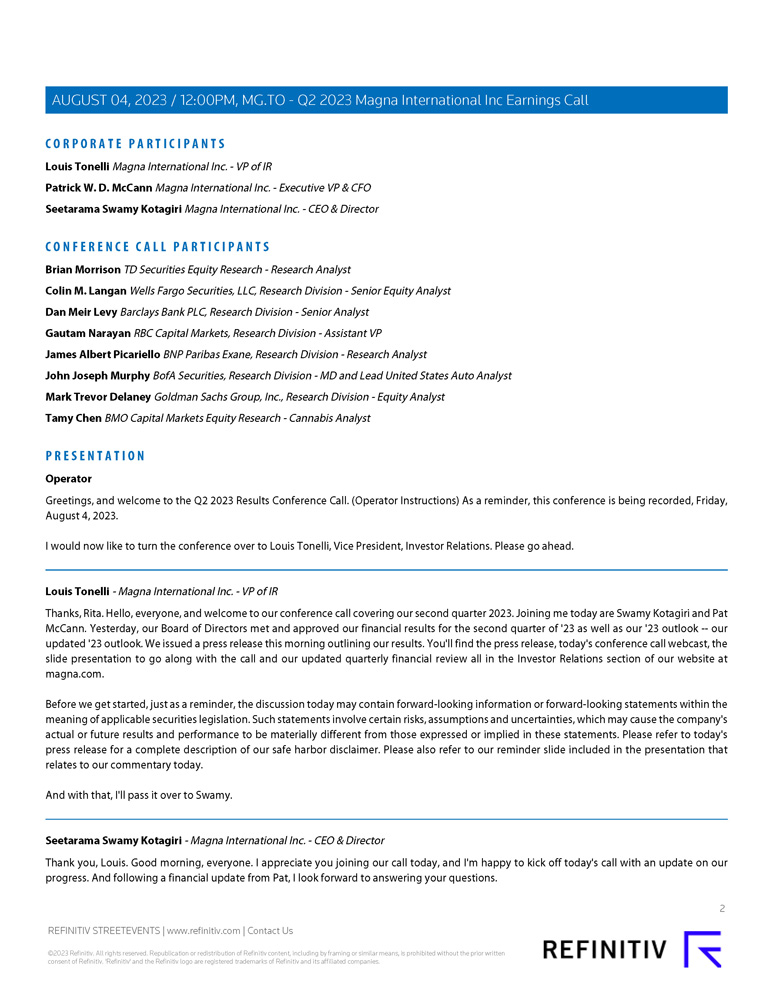 | MAGNA INTERNATIONAL INC. |