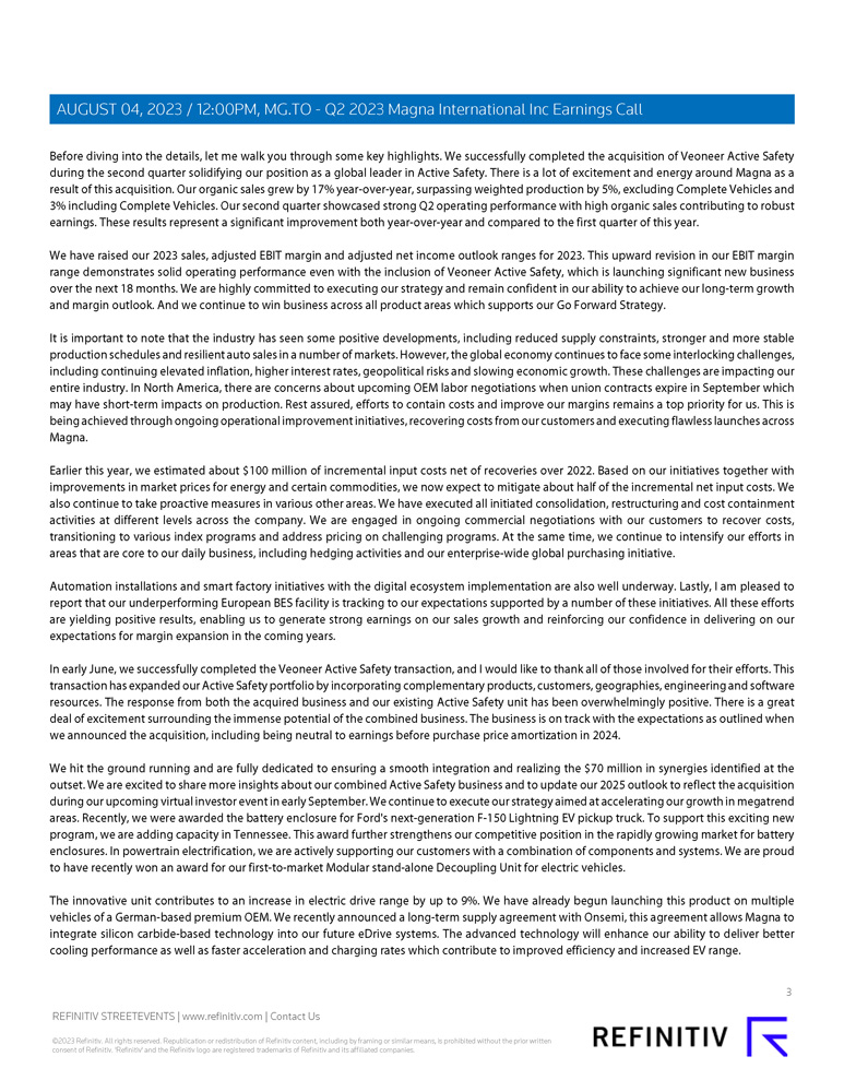 | Exhibit 99.3 | Q2 2023 Results Call Transcript (August 4, 2023) | |