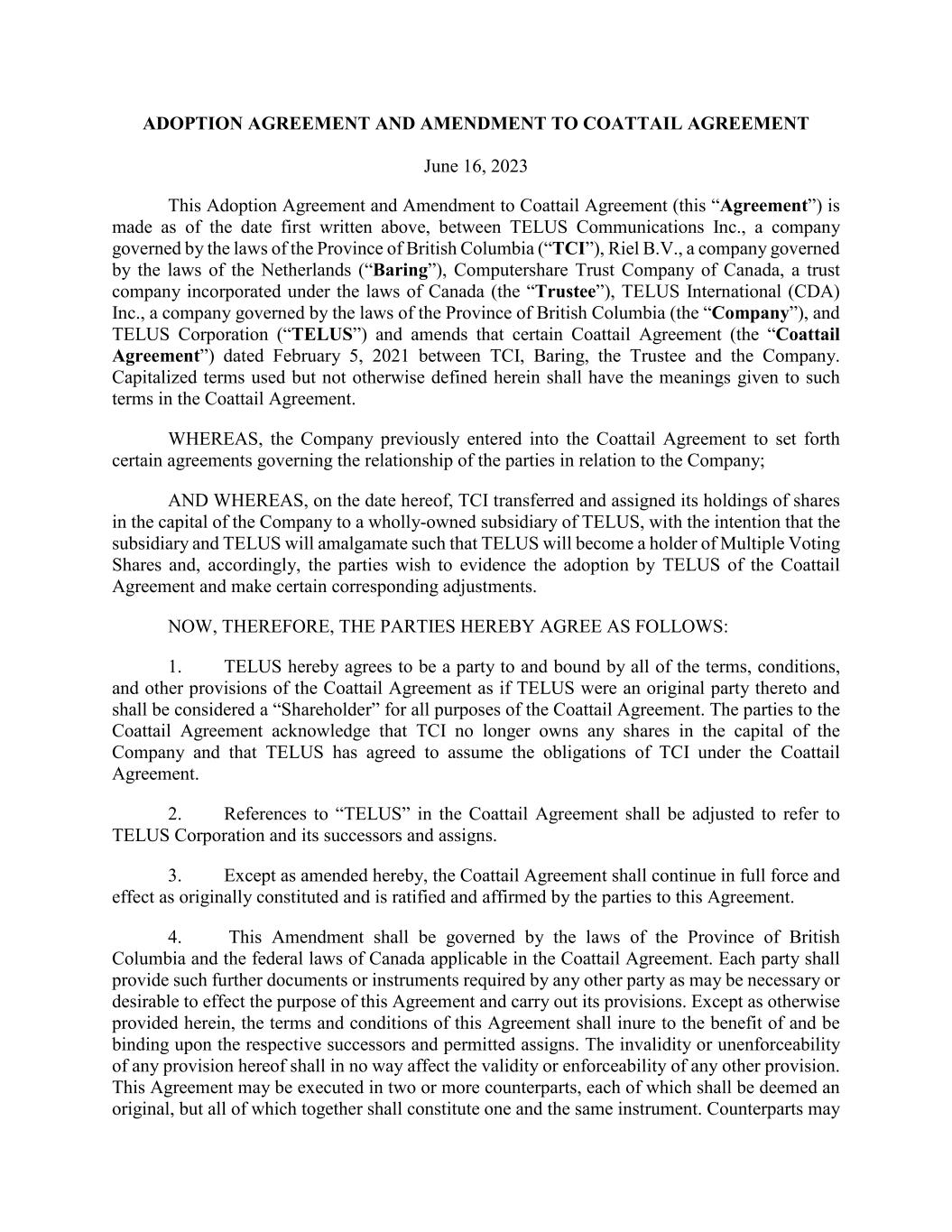 | TELUS International (Cda) Inc. |