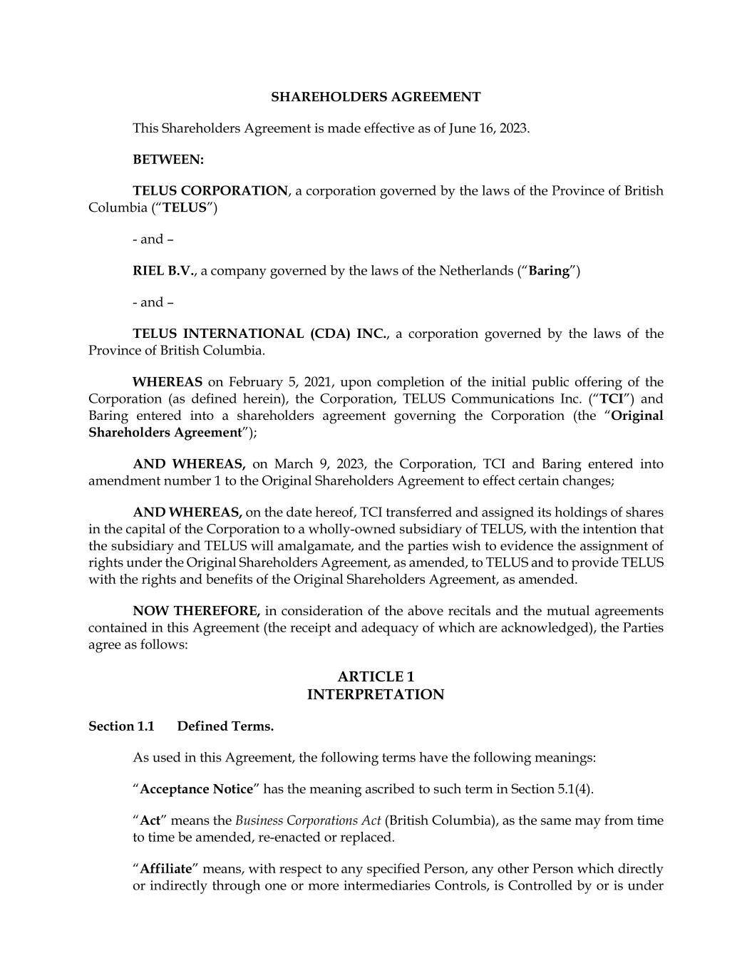 TELUS International (Cda) Inc.