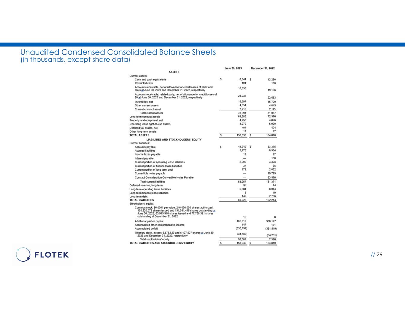 Unaudited Condensed Consolidated Balance Sheets (in thousands, except share data) // 26