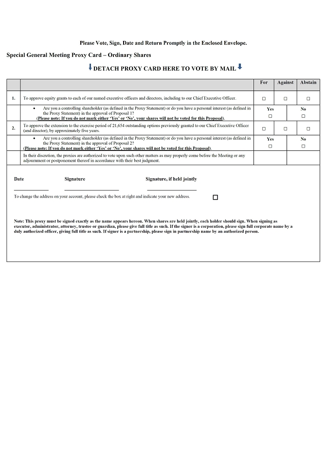 | 99.1 | Notice of the Special General Meeting of Shareholders and Proxy Statement | |