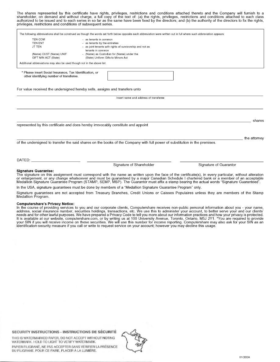 | 5. | The registrant's other certifying officer(s) and I have disclosed, based on our most recent evaluation of internal control over financial reporting, to the registrant's auditors and the audit committee of the registrant's board of directors (or persons performing the equivalent functions): |