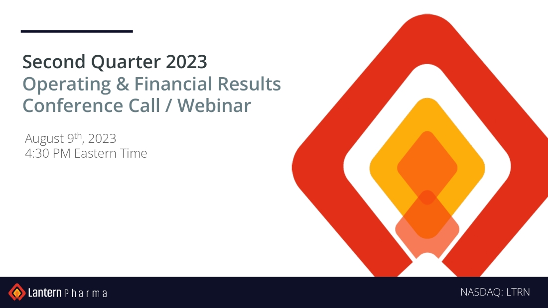 Lantern will host its second quarter 2023 earnings call and webinar today, Wednesday, August 9, 2023, at 4:30 p.m. ET.