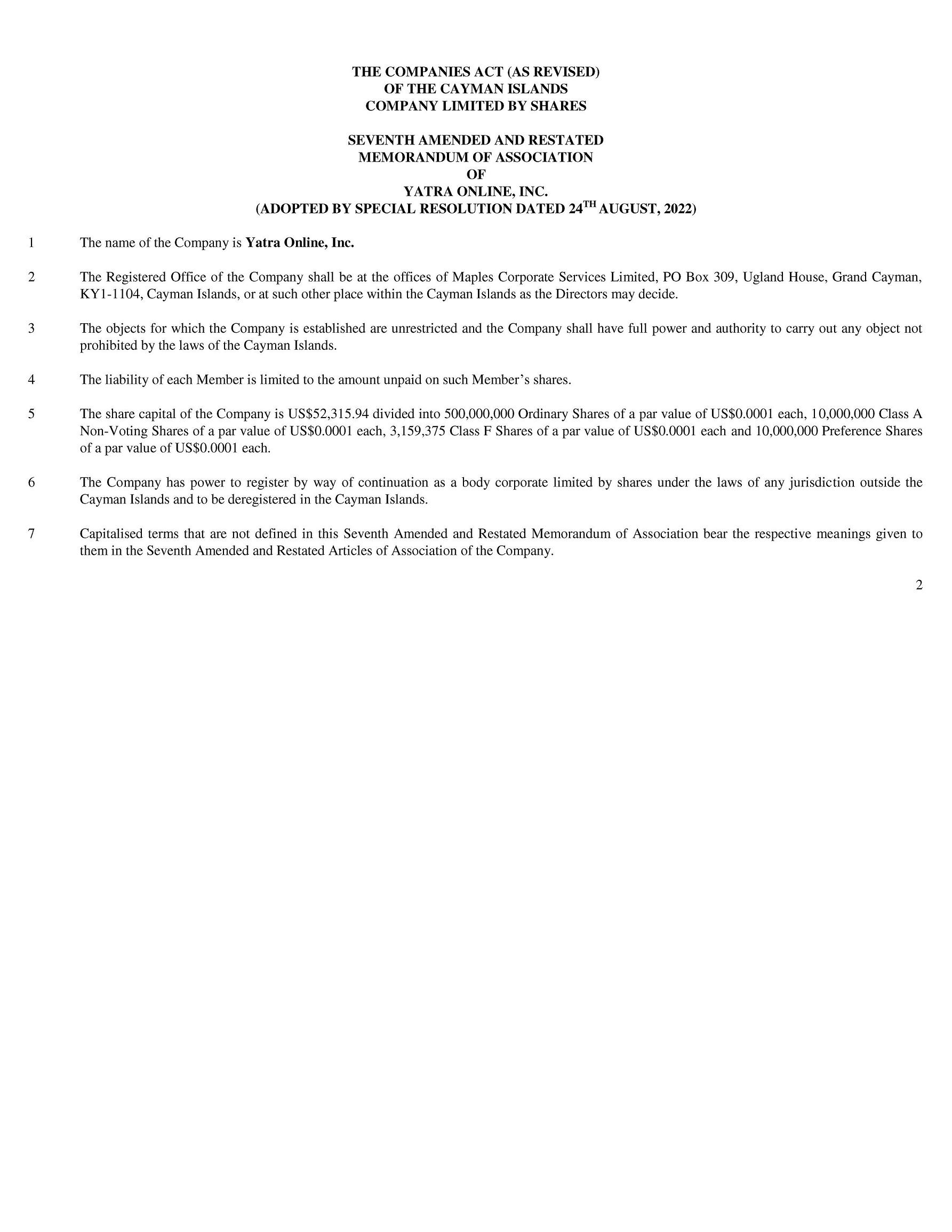 | ● | the ability of Yatra Online Limited’s (“Yatra India”), Yatra Online, Inc.’s Indian subsidiary to consummate an initial public offering in India (the “Indian IPO”); | |