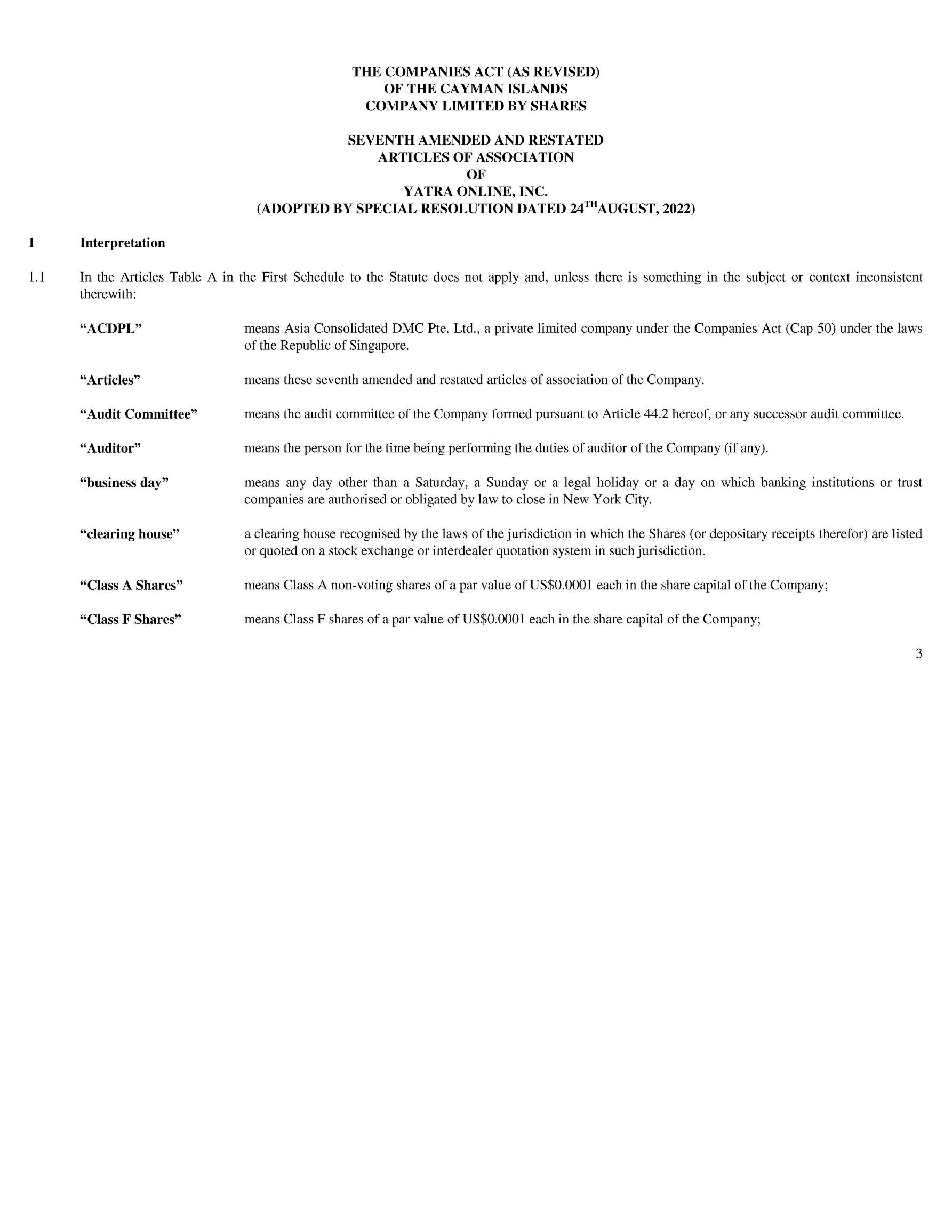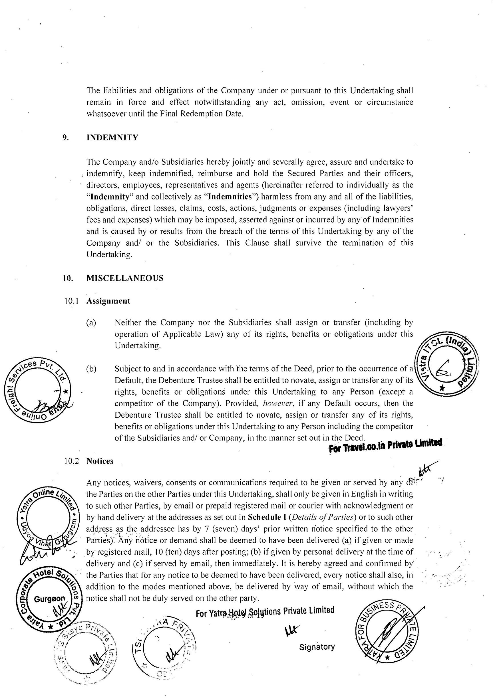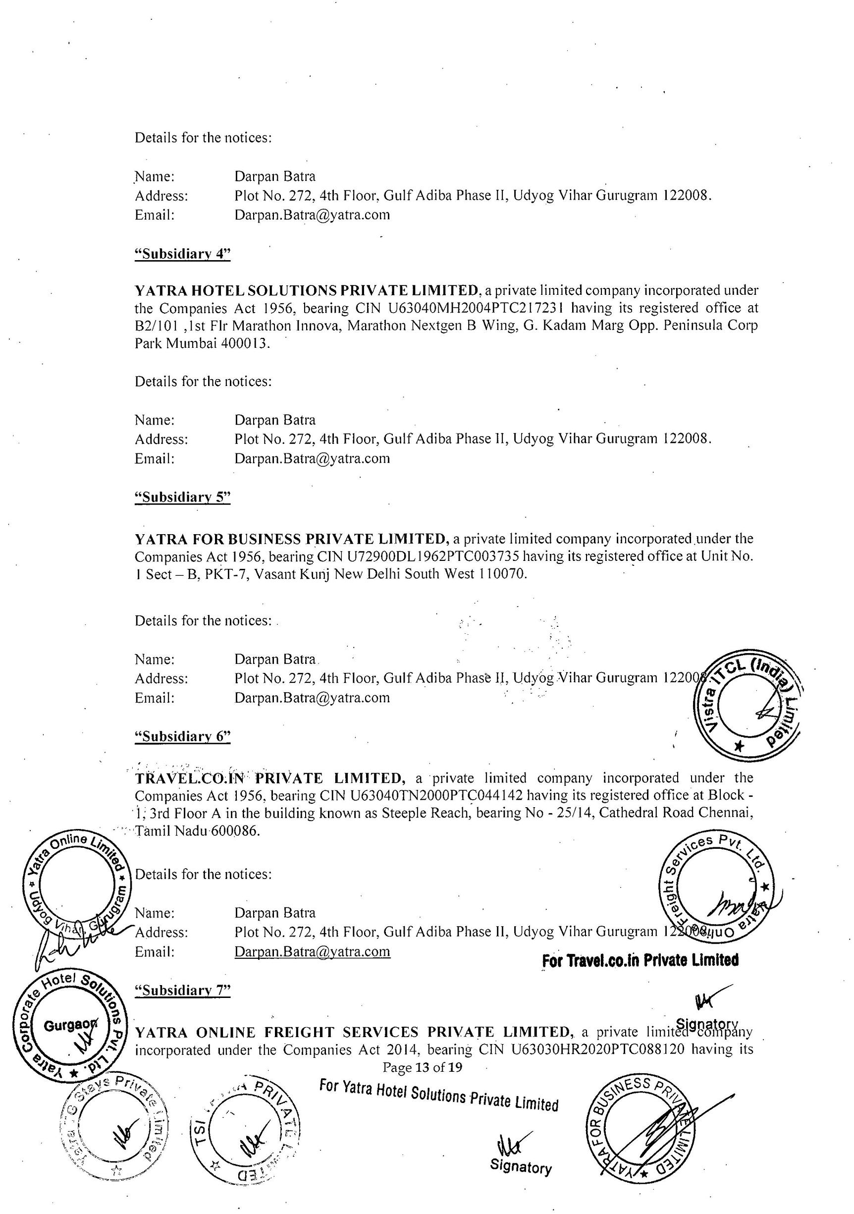 We operate under a number of trademarks and trade names, including, among others, “Yatra”, “Yatra For Business” and “Travelguru.” This Annual Report contains references to our trademarks and trade names and to those belonging to other entities. Solely for convenience, trademarks and trade names referred to in this Annual Report may appear without the ® or TM symbols, but such references are not intended to indicate, in any way, that we will not assert, to the fullest extent possible under applicable law, our rights or the rights of the applicable licensor to these trademarks and trade names. Our use or display of other companies’ trademarks, trade names, or service marks does not imply any affiliation with, or endorsement or sponsorship by, those companies.