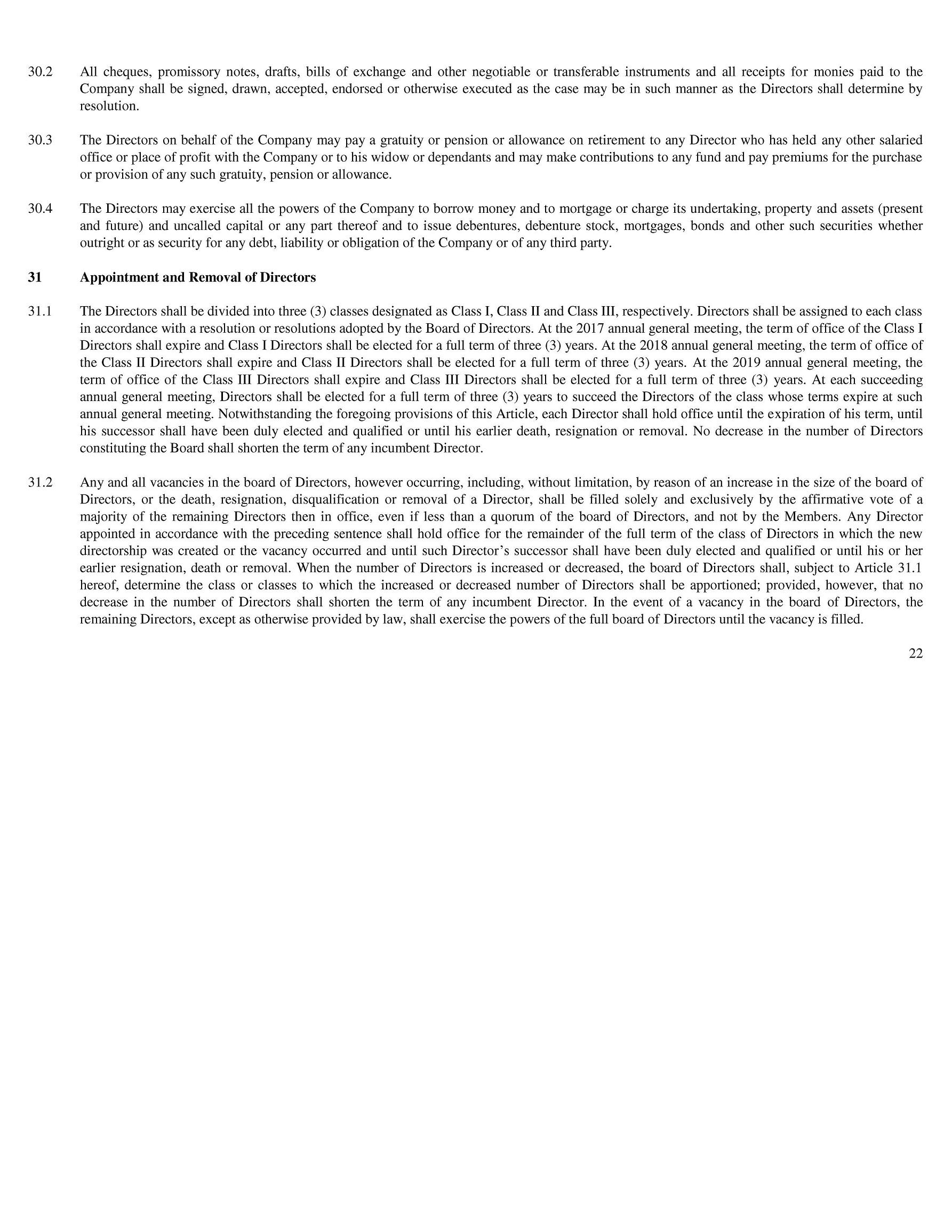 | ● | whether we will continue to be treated as a foreign corporation for U.S. federal income tax purpose; | |