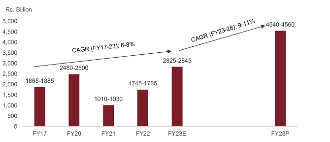 Domestic air freight traffic is estimated to grow at 9-12% CAGR during fiscals 2023 to 2028