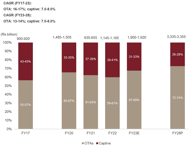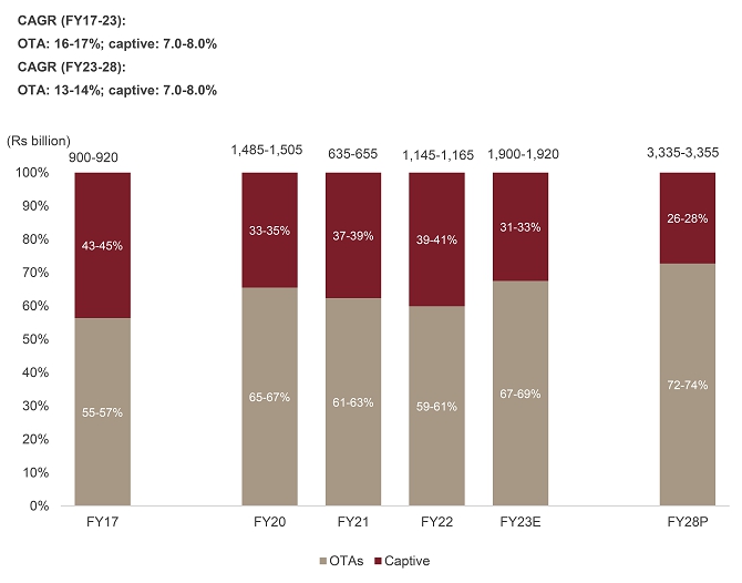 Going ahead, domestic freight traffic is expected to reach 1,100-1,300 thousand tonnes by fiscal 2028, growing at a CAGR of 10-12% from fiscal 23, led by increased capacity and connectivity on domestic routes, and higher GDP growth leading to high goods transfer within the country.
