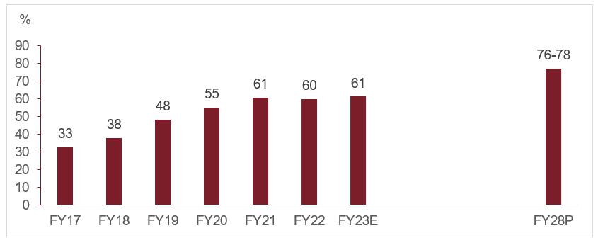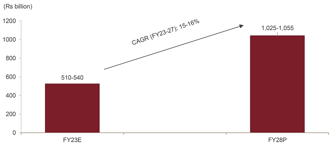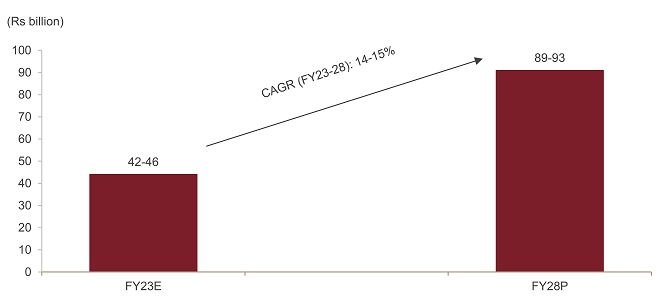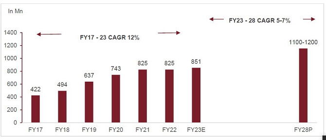 Going forward, the international freight traffic is expected to grow at a CAGR of 10-13% between fiscal 2023 and 2028 reaching 3,000 – 3,500 thousand tons by fiscal 2028.