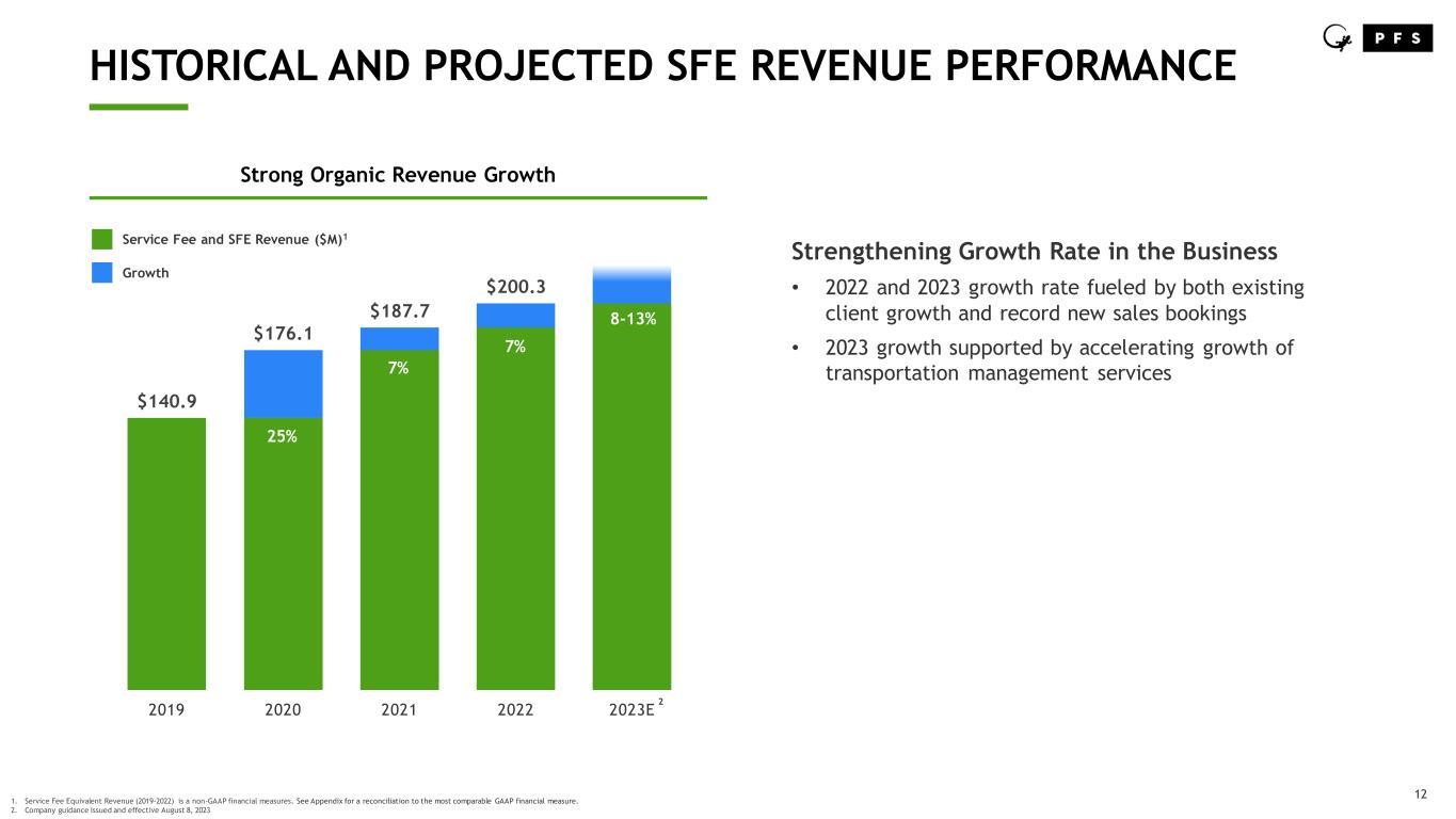 12 $140.9 $176.1 $187.7 $200.3 2019 2020 2021 2022 2023E HISTORICAL AND PROJECTED SFE REVENUE PERFORMANCE Strong Organic Revenue Growth Service Fee and SFE Revenue ($M)1 1. Service Fee Equivalent Revenue (2019-2022) is a non-GAAP financial measures. See Appendix for a reconciliation to the most comparable GAAP financial measure. 2. Company guidance issued and effective August 8, 2023 Growth 25% 7% 7% 8-13% Strengthening Growth Rate in the Business • 2022 and 2023 growth rate fueled by both existing client growth and record new sales bookings • 2023 growth supported by accelerating growth of transportation management services 2