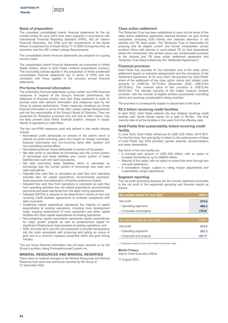 | Date: 18 August 2023 | By: | /s/ Martin Preece |
