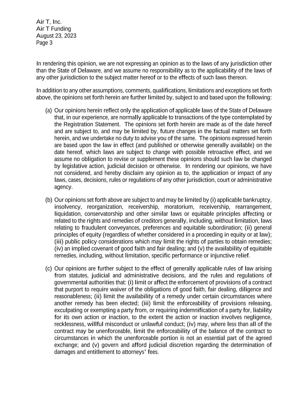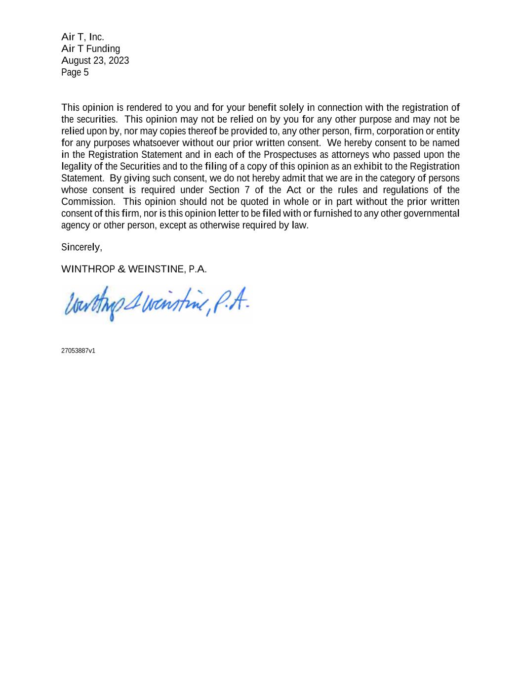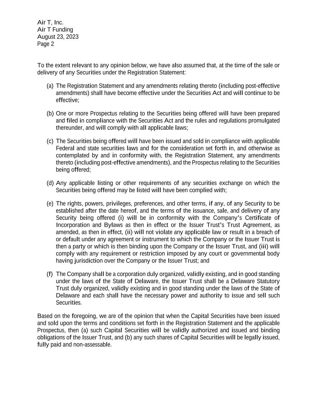 | | AIR T, INC. By: /s/ Nick Swenson Name: Nick Swenson Title: Chief Executive Officer, President and Chairman of the Board (Principal Executive Officer) |