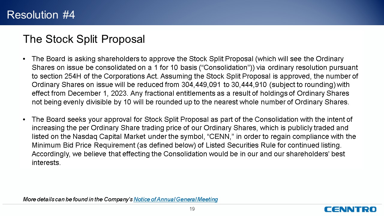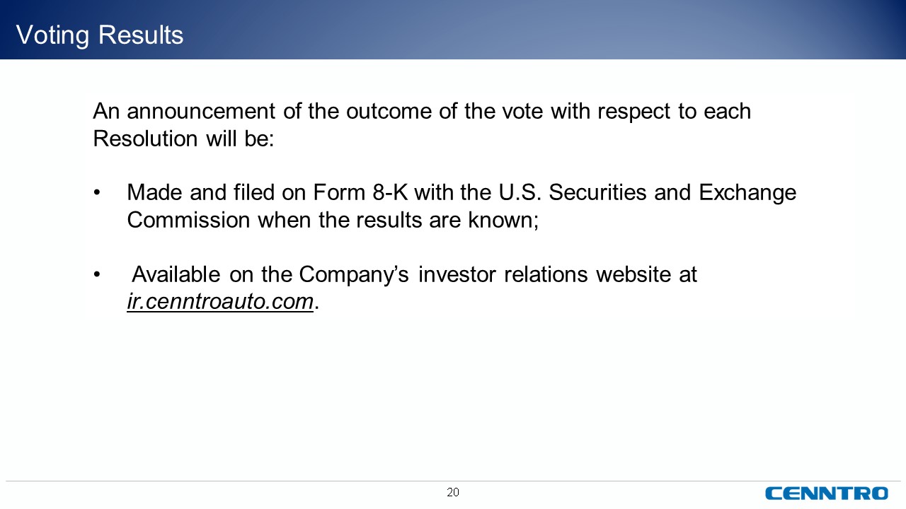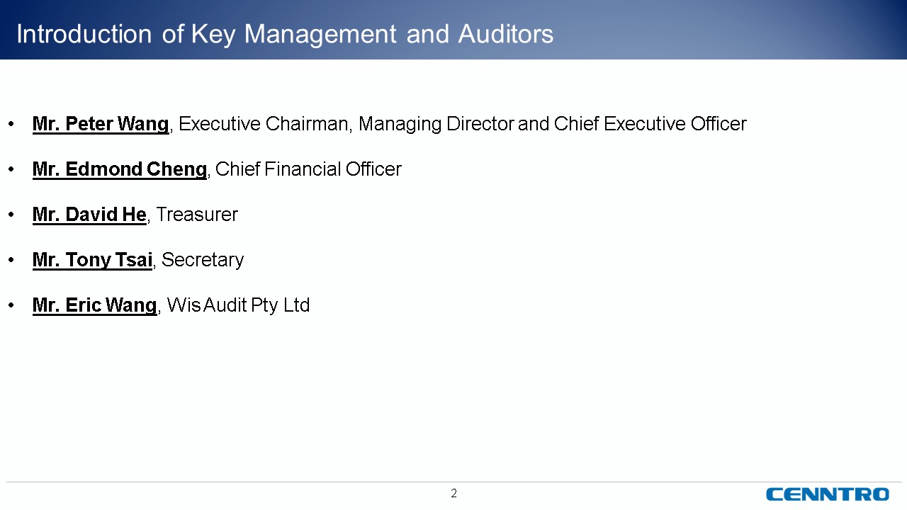 “Company”) (NASDAQ: CENN) solely for informational purposes. This presentation contains forward-looking statements that reflect the Company’s intent, beliefs or current expectations about the future. These statements can be recognized by the