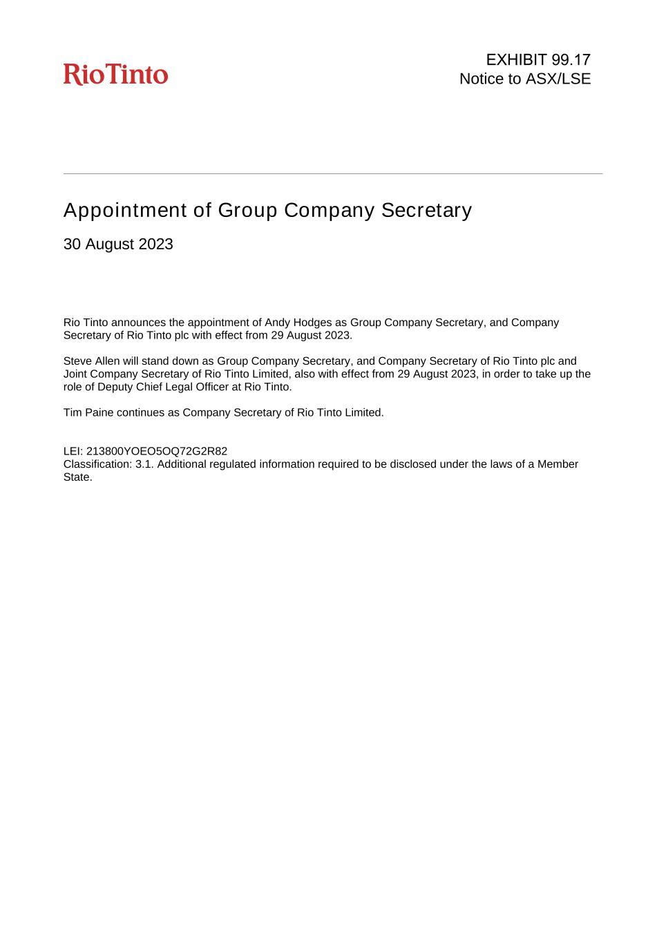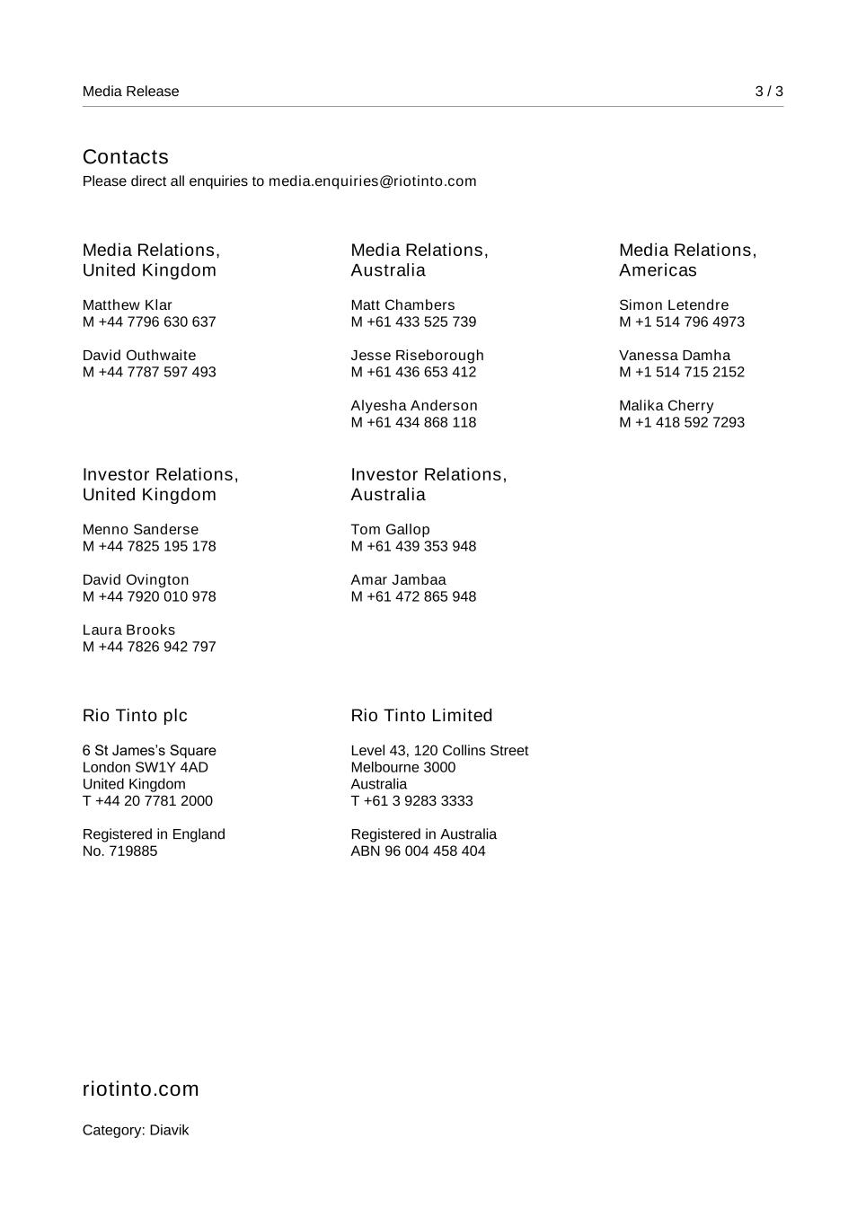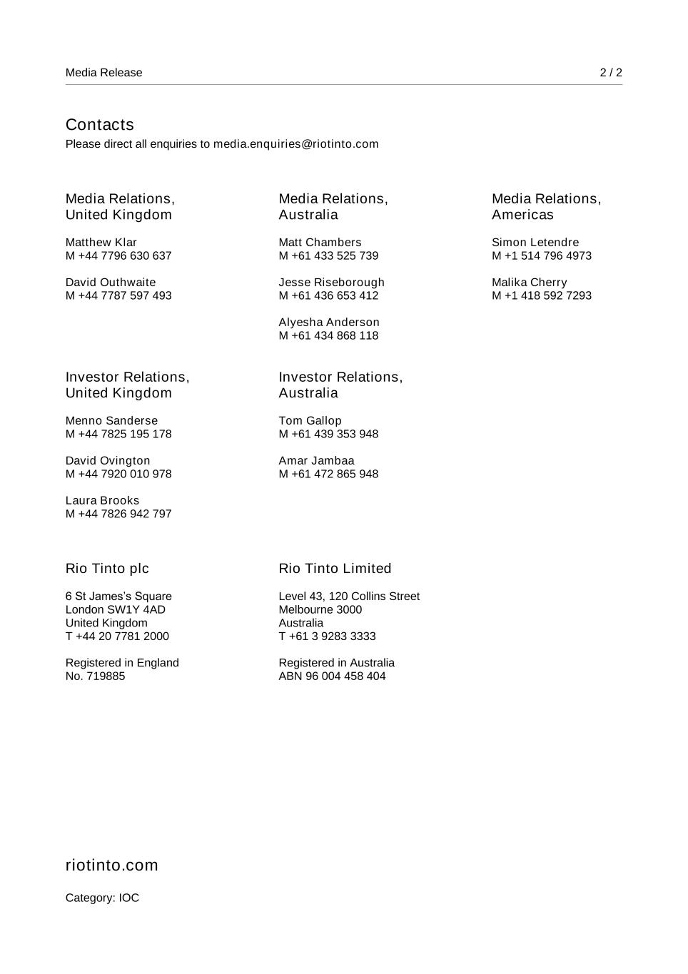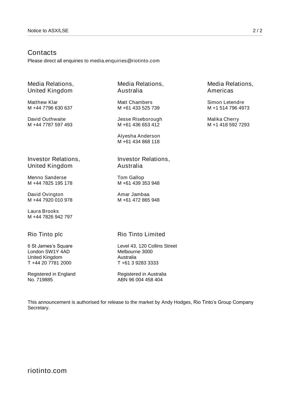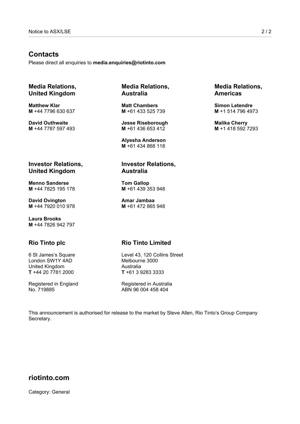 | Rio Tinto plc | Rio Tinto Limited | ||||