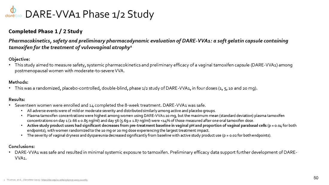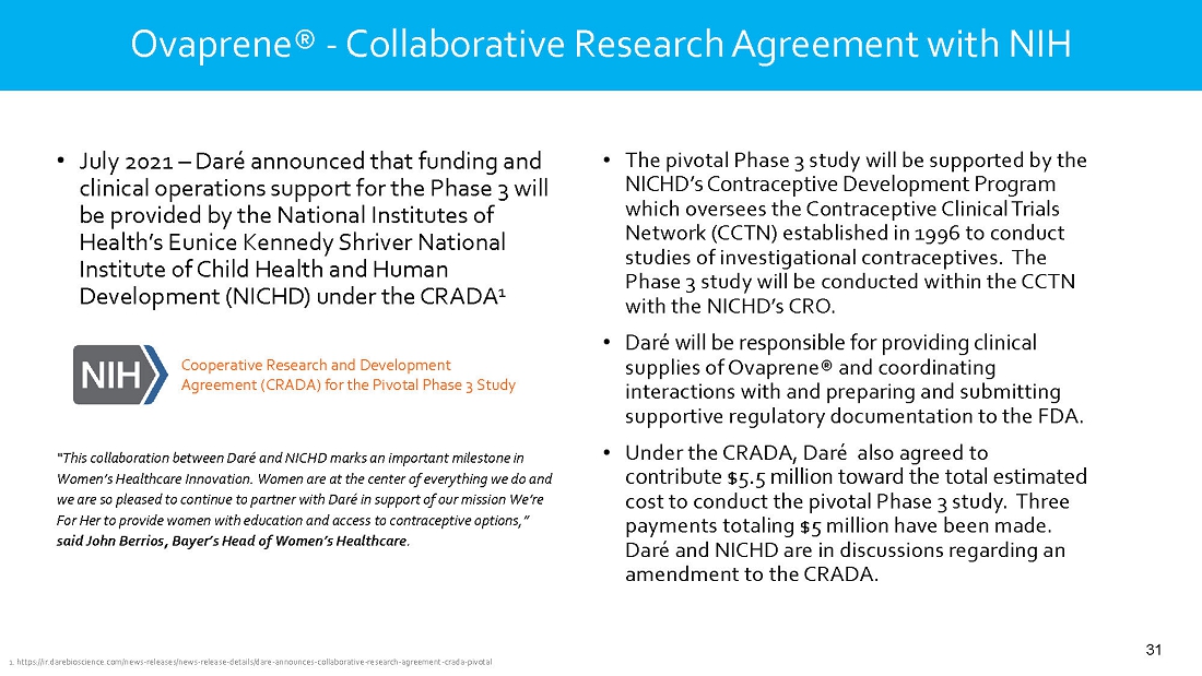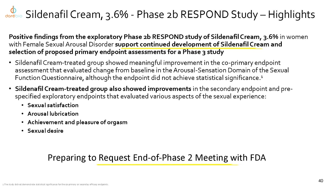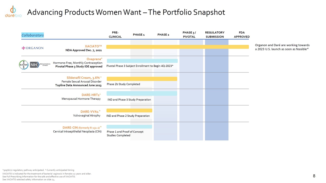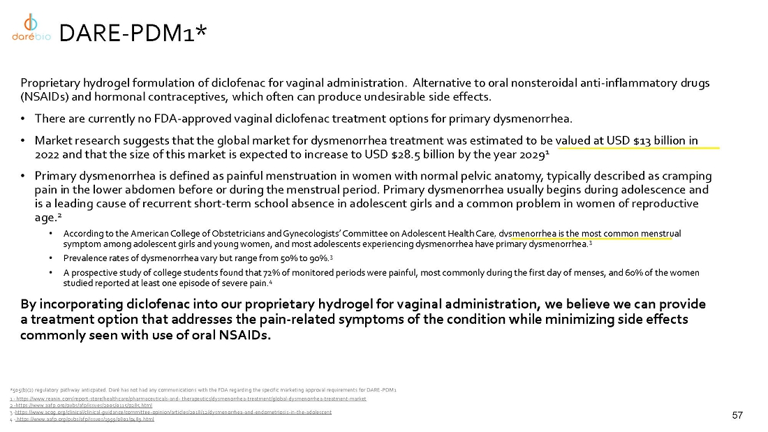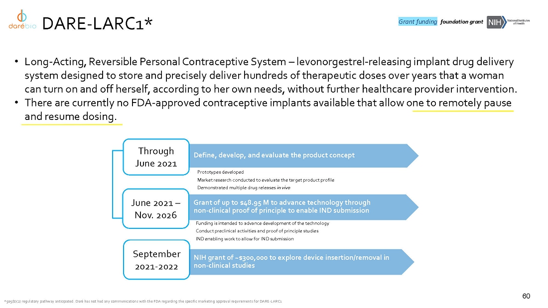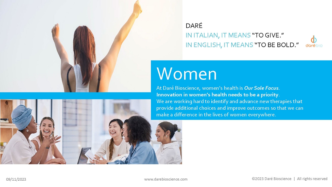 The information in Item 7.01 of this report, including Exhibit 99.1, shall not be deemed “filed” for purposes of Section 18 of the Securities Exchange Act of 1934, as amended, or otherwise subject to liability under that Section or Sections 11 and 12(a)(2) of the Securities Act of 1933, as amended. The information contained in this Item 7.01 and in Exhibit 99.1 shall not be incorporated by reference into any filing with the Securities and Exchange Commission made by Daré, whether made before or after the date hereof, regardless of any general incorporation language in such filing.