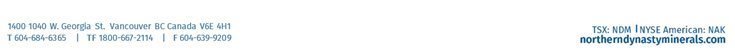 The report is also available via the homepage on the Company website at www.northerndynastyminerals.com.