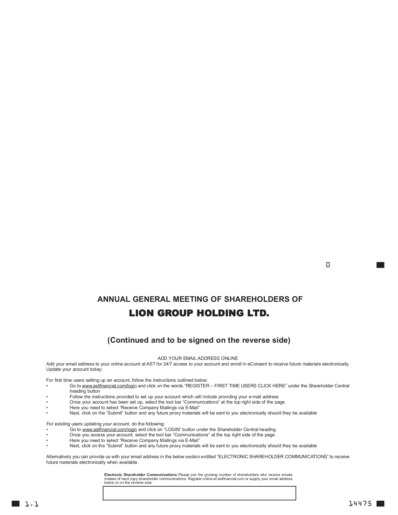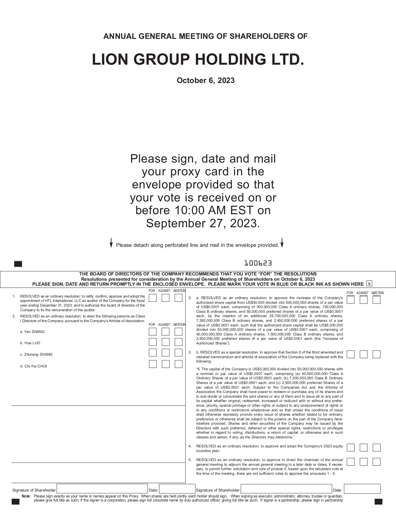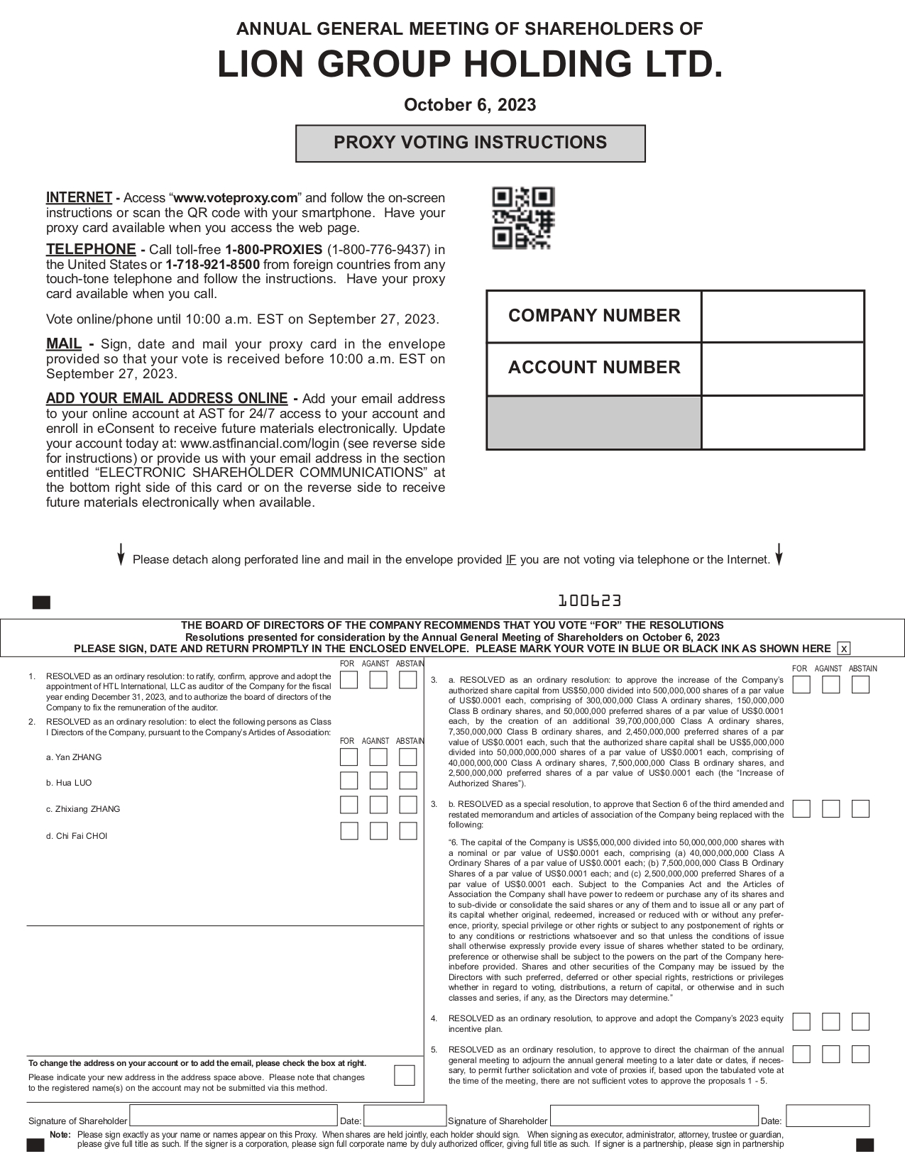 Lion Group Holding Ltd. (Nasdaq: LGHL) (the “Company”), today announced to hold the Annual Shareholders’ Meeting on October 6, 2023.