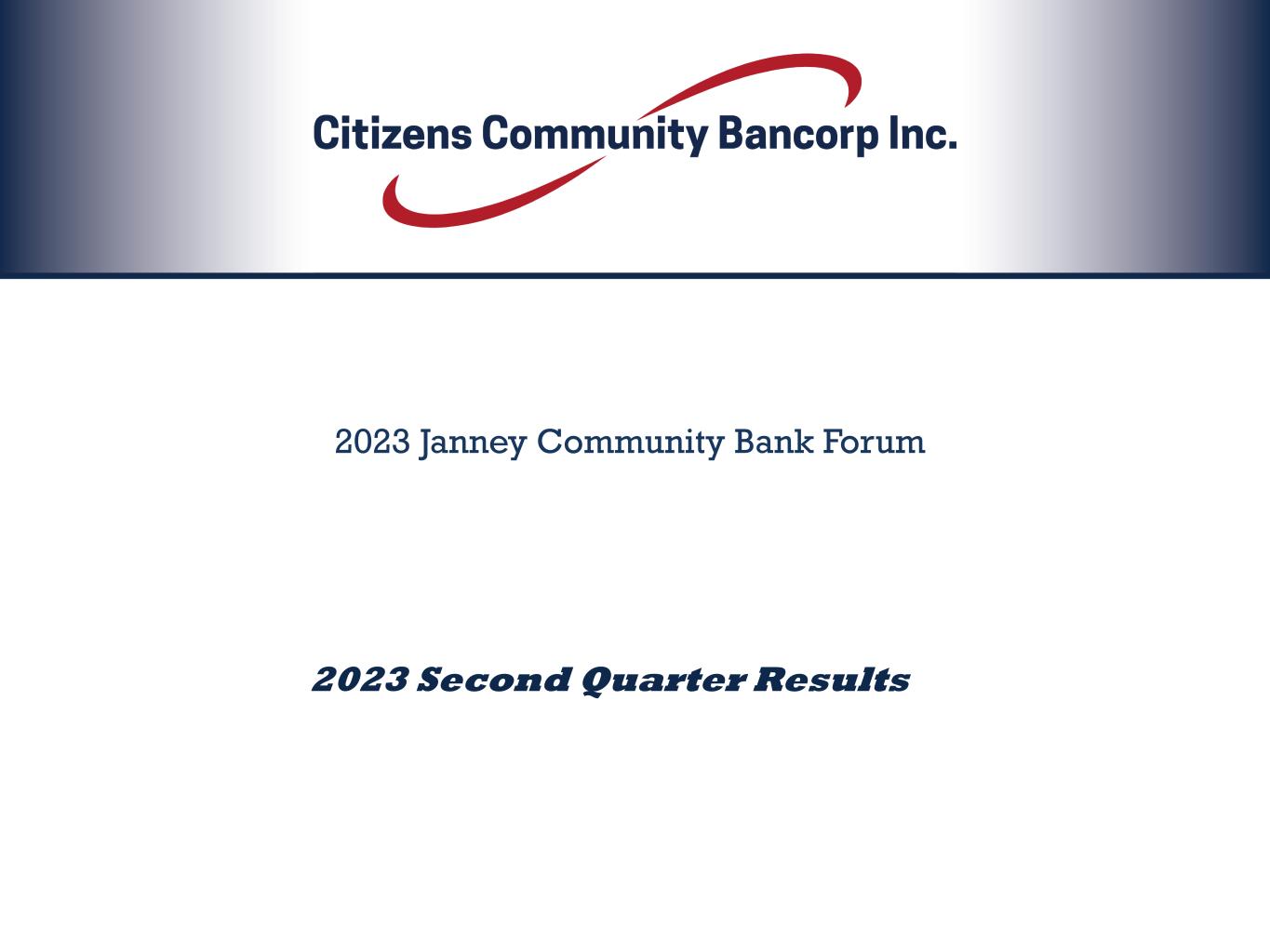2023 Second Quarter Results 2023 Janney Community Bank Forum