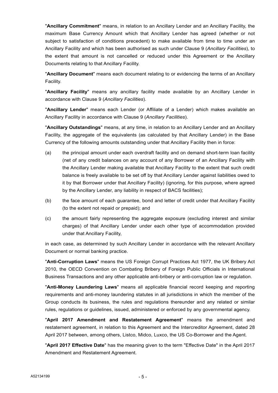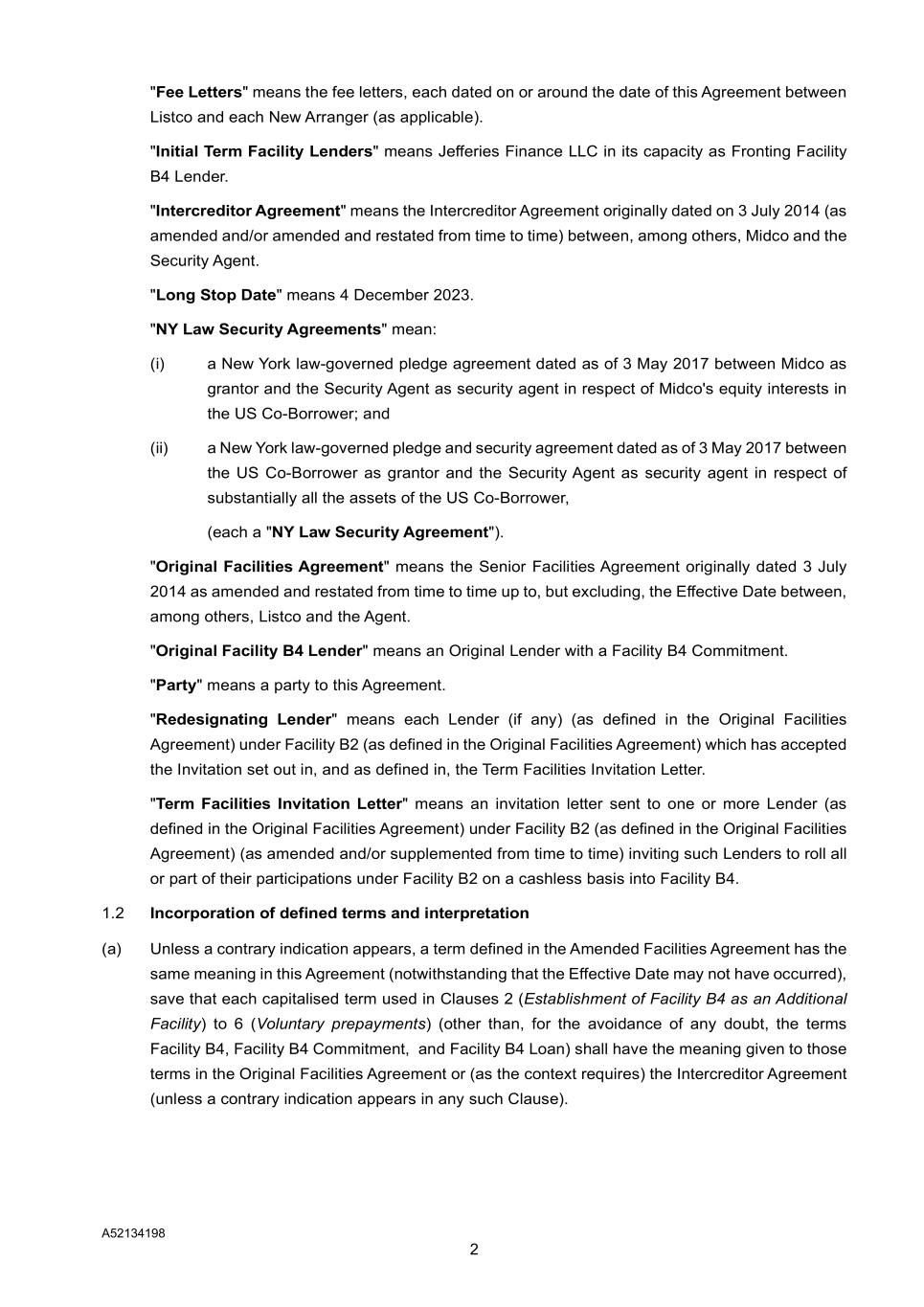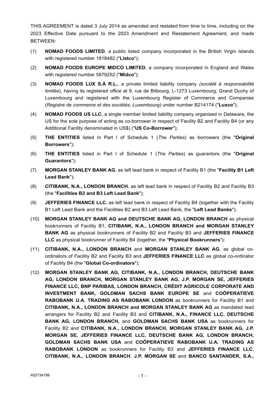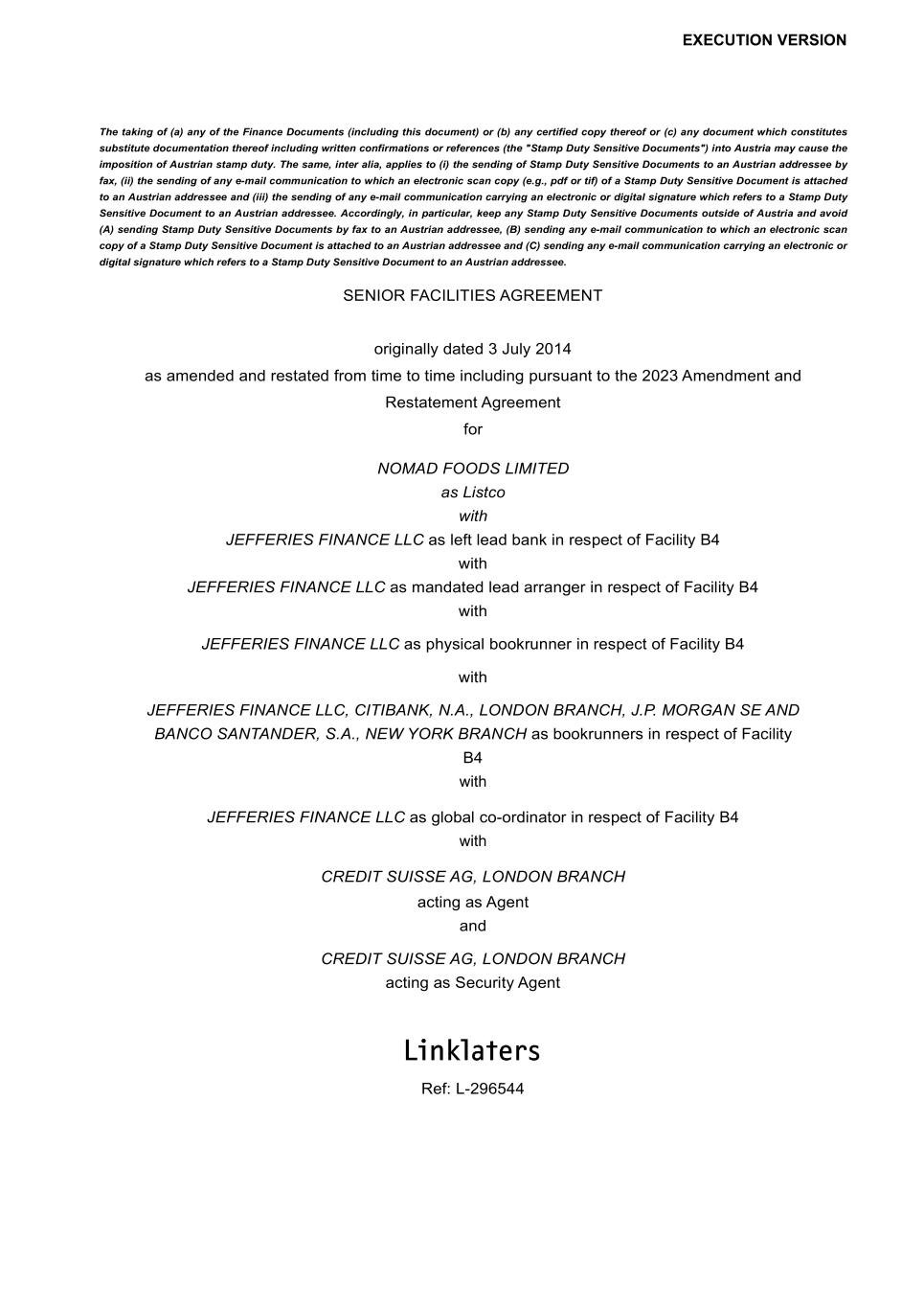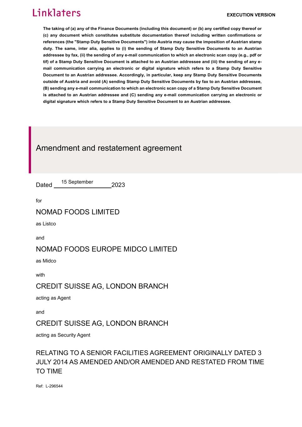 | | Senior Facilities Agreement, originally dated 3 July 2014, as amended and restated from time to time, including pursuant to the Amendment and Restatement Agreement, by, among others, the Company and Credit Suisse AG, London Branch as security agent and agent on behalf of certain other finance parties thereto. |