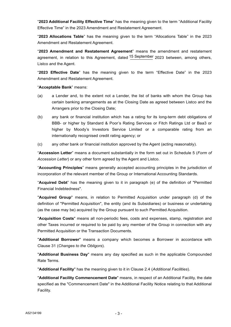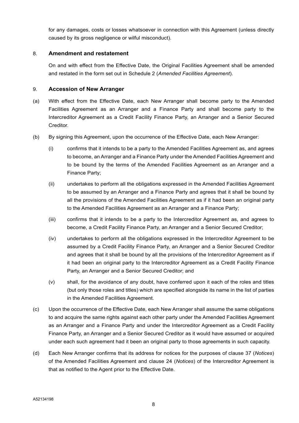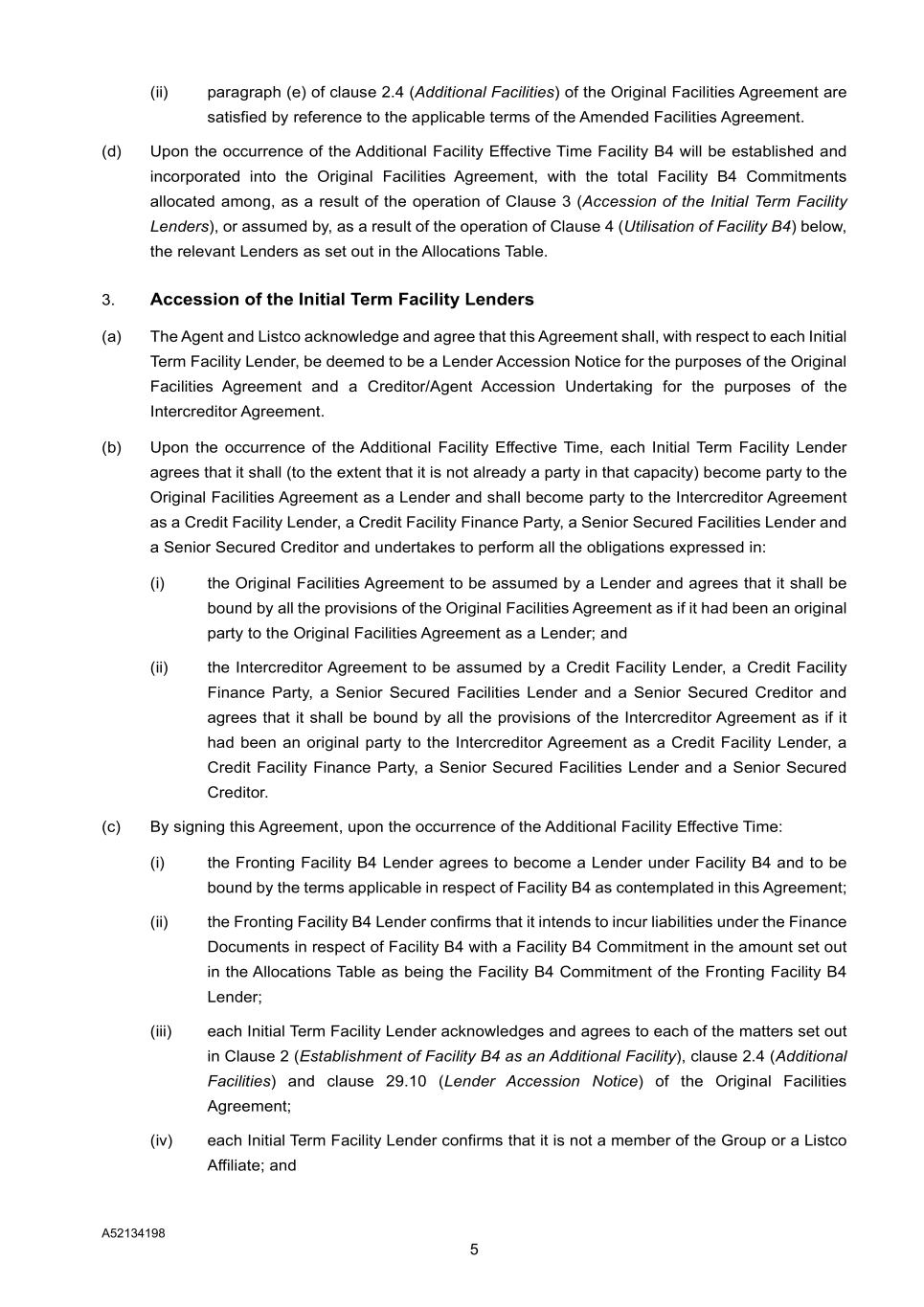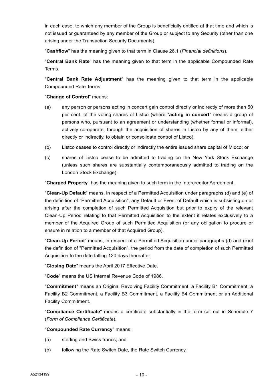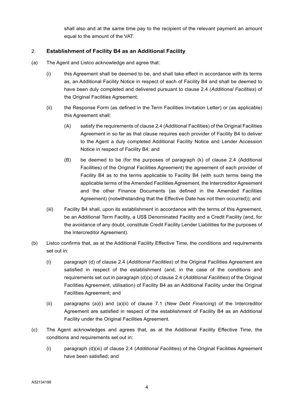 | | Senior Facilities Agreement, originally dated 3 July 2014, as amended and restated from time to time, including pursuant to the Amendment and Restatement Agreement, by, among others, the Company and Credit Suisse AG, London Branch as security agent and agent on behalf of certain other finance parties thereto. |