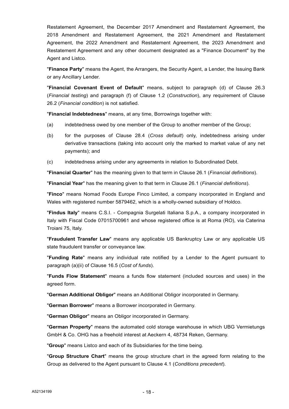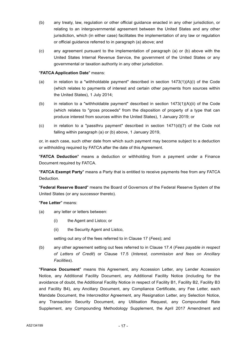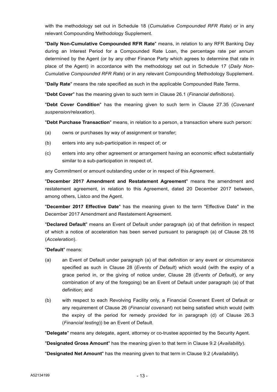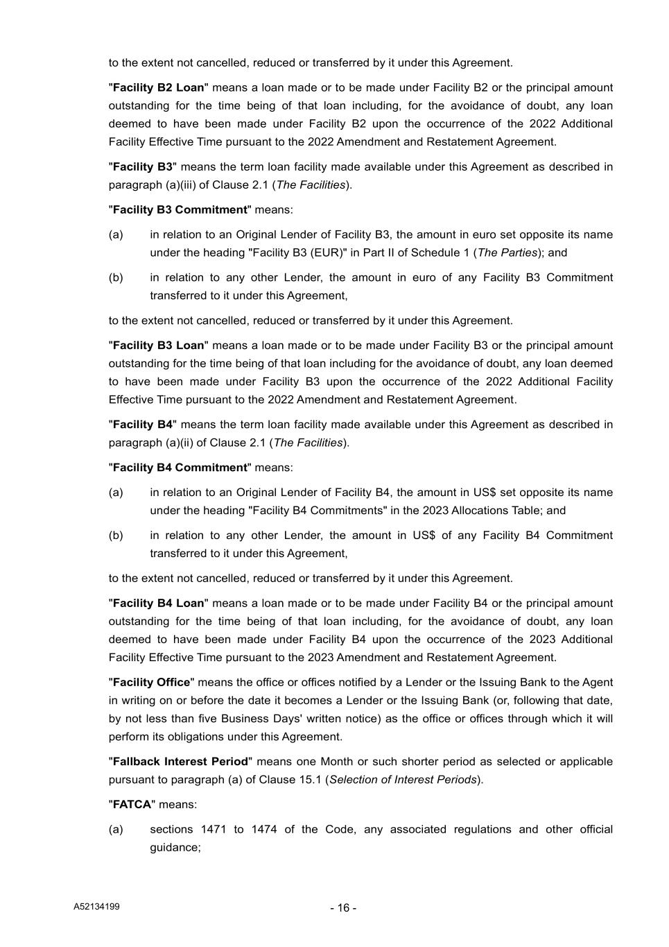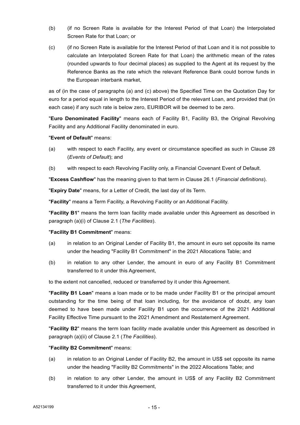 | | Senior Facilities Agreement, originally dated 3 July 2014, as amended and restated from time to time, including pursuant to the Amendment and Restatement Agreement, by, among others, the Company and Credit Suisse AG, London Branch as security agent and agent on behalf of certain other finance parties thereto. |