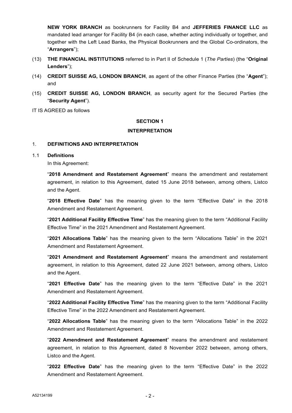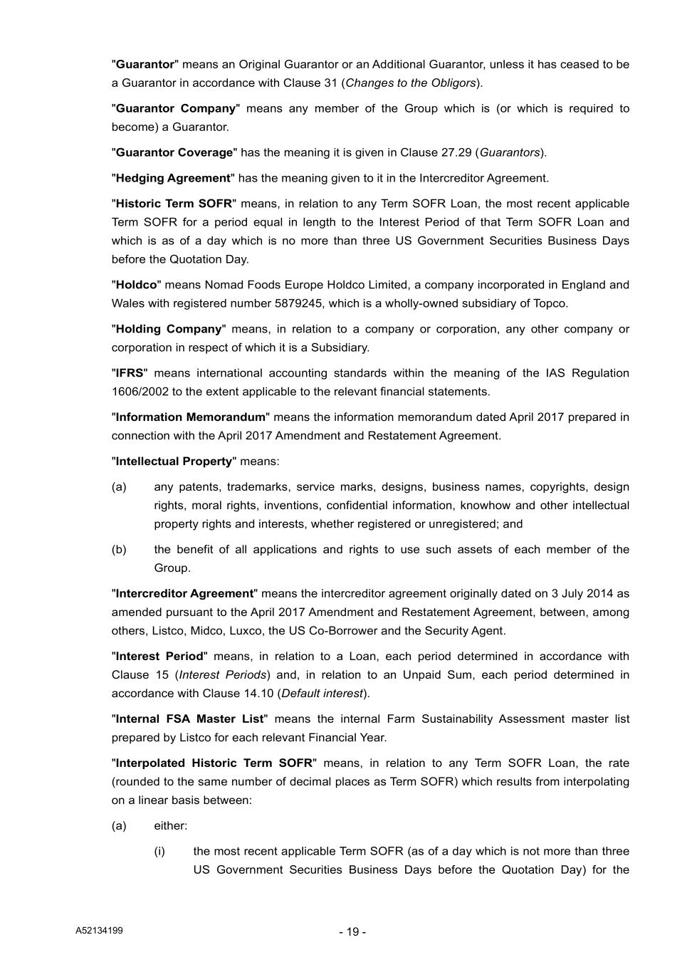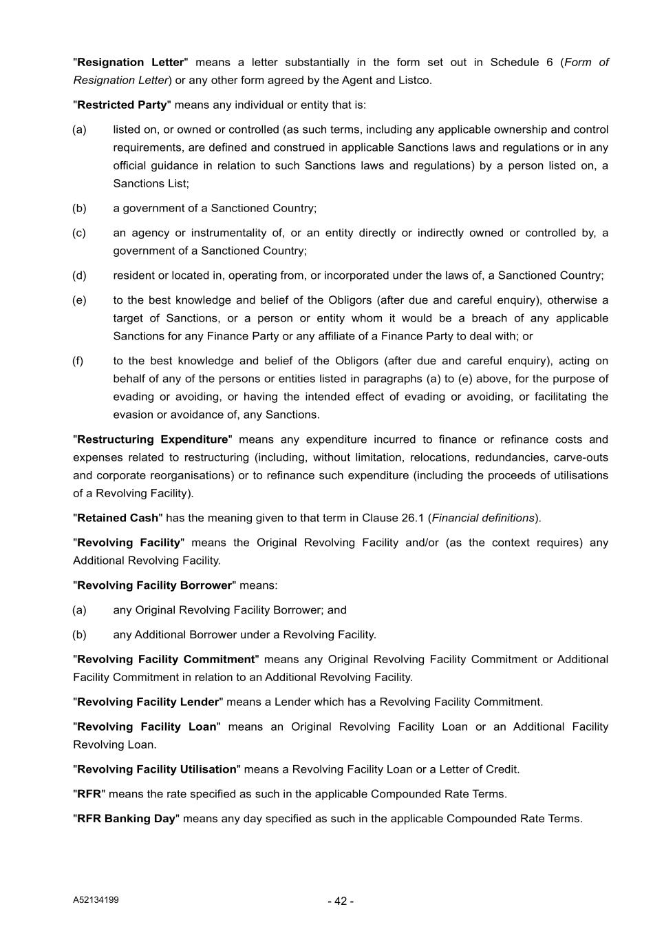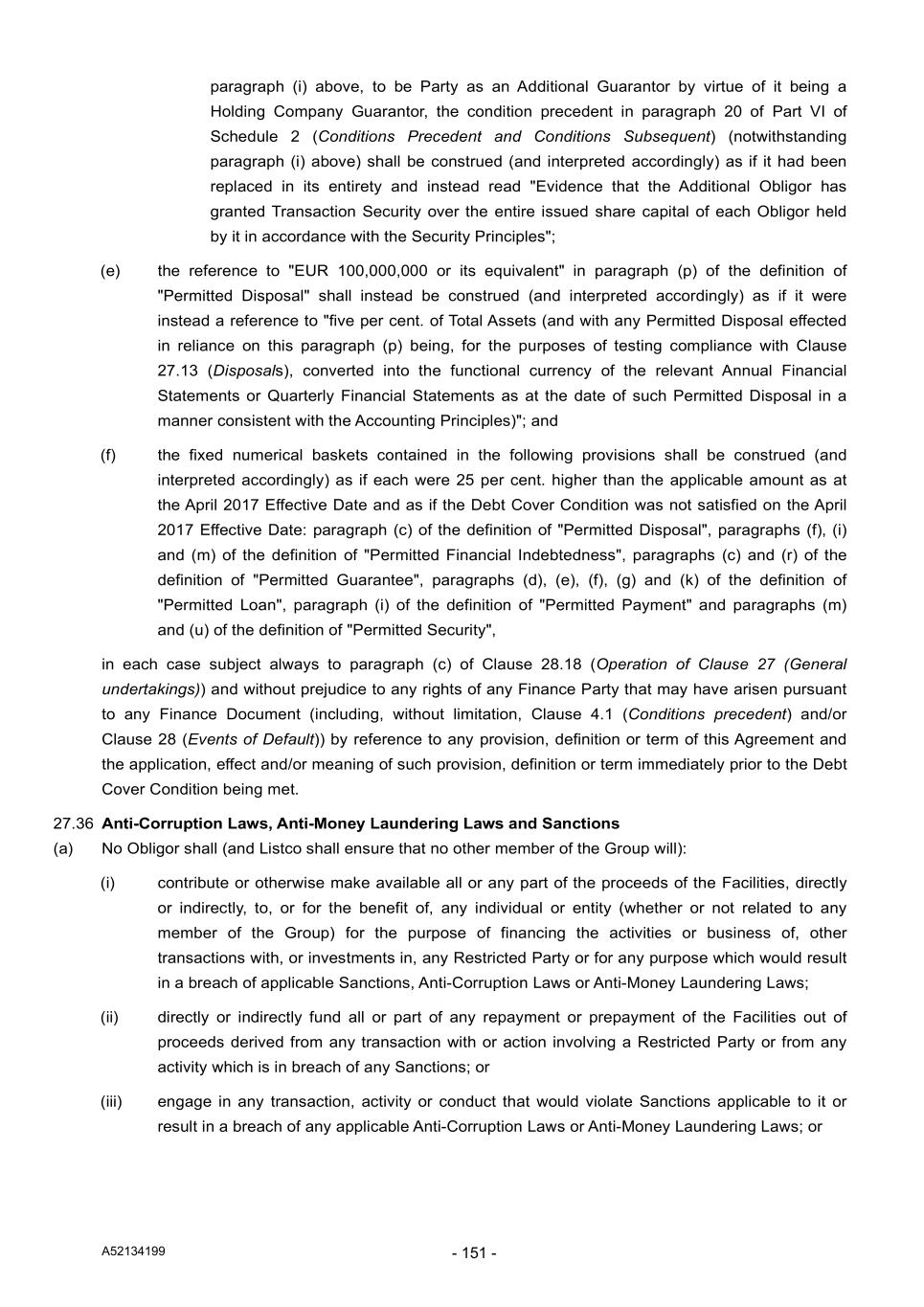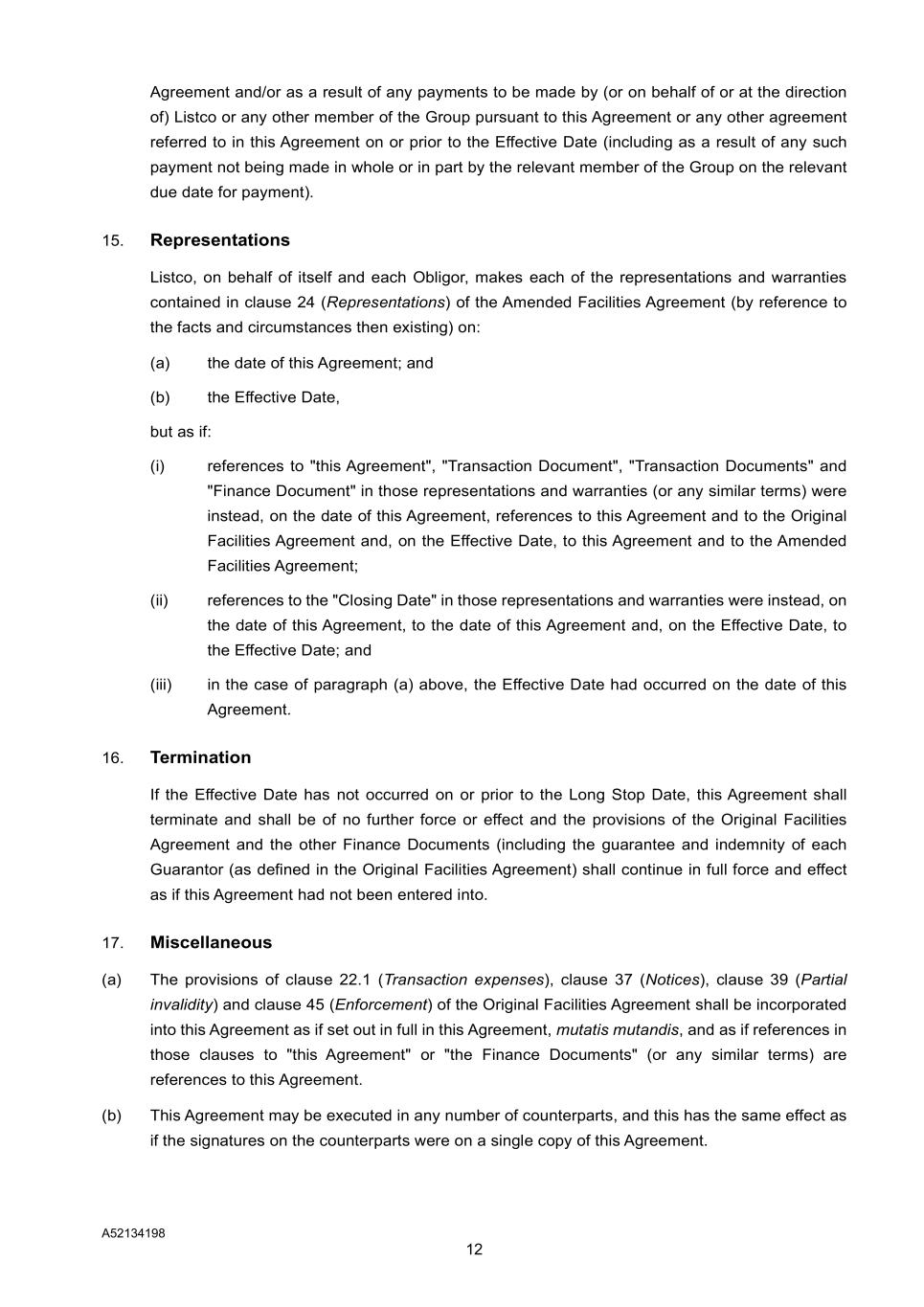 | | Senior Facilities Agreement, originally dated 3 July 2014, as amended and restated from time to time, including pursuant to the Amendment and Restatement Agreement, by, among others, the Company and Credit Suisse AG, London Branch as security agent and agent on behalf of certain other finance parties thereto. |