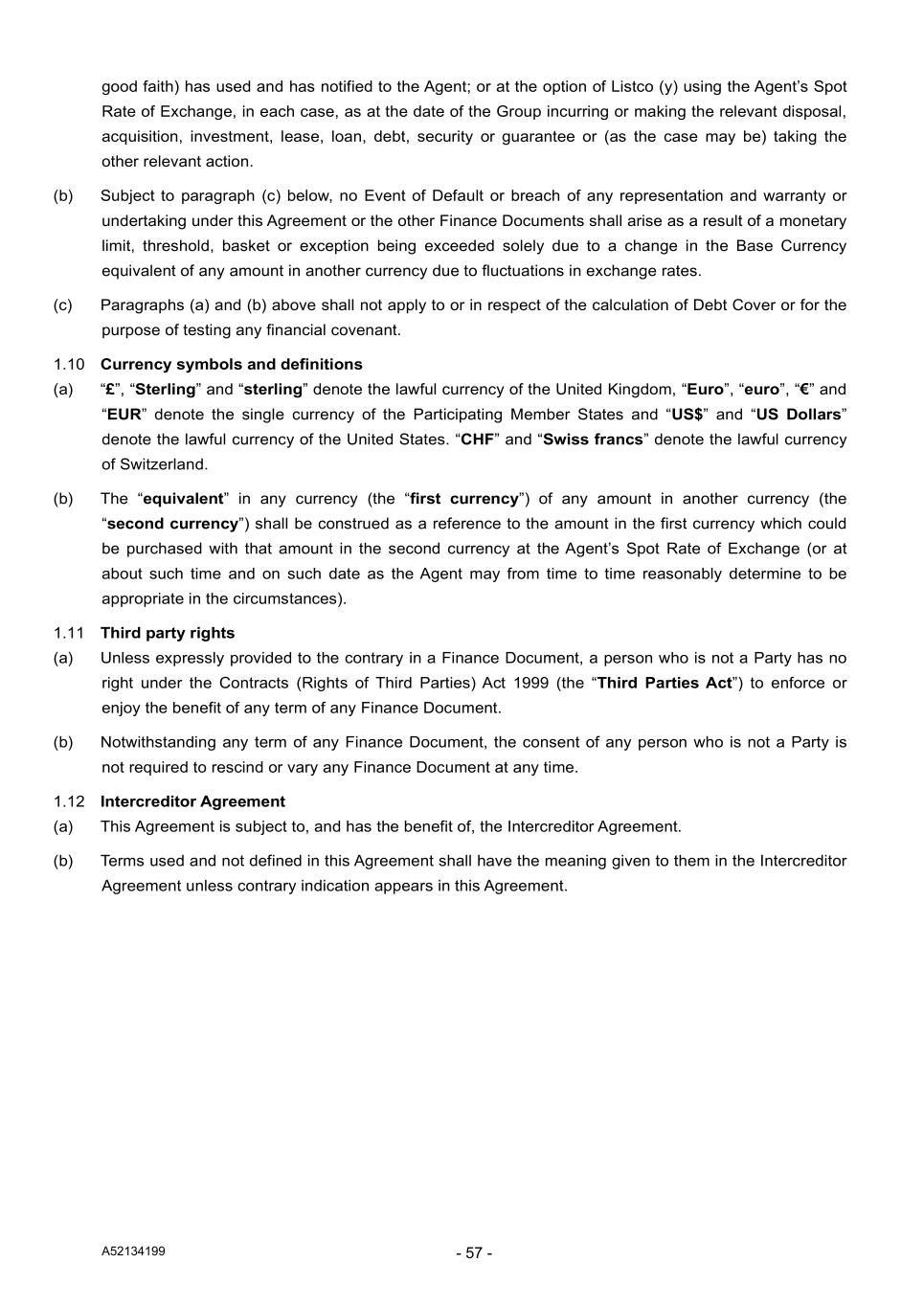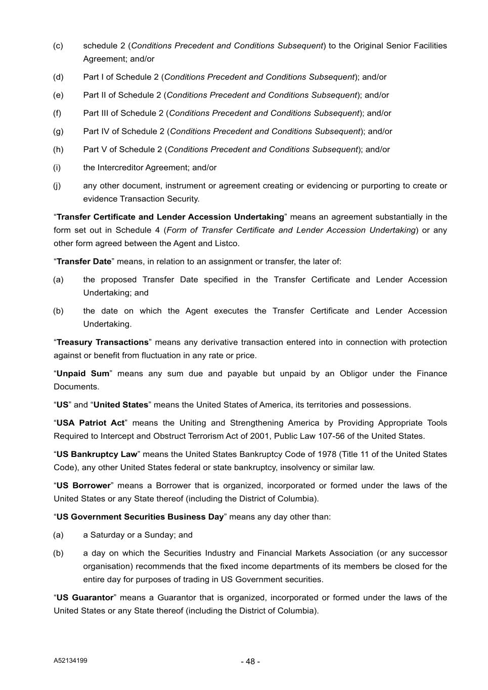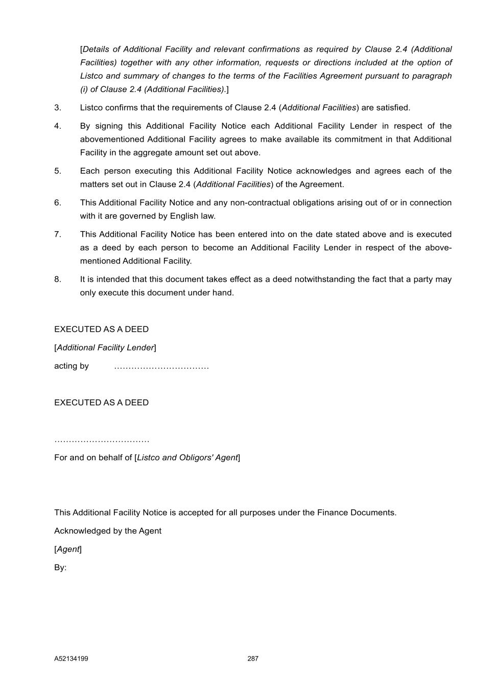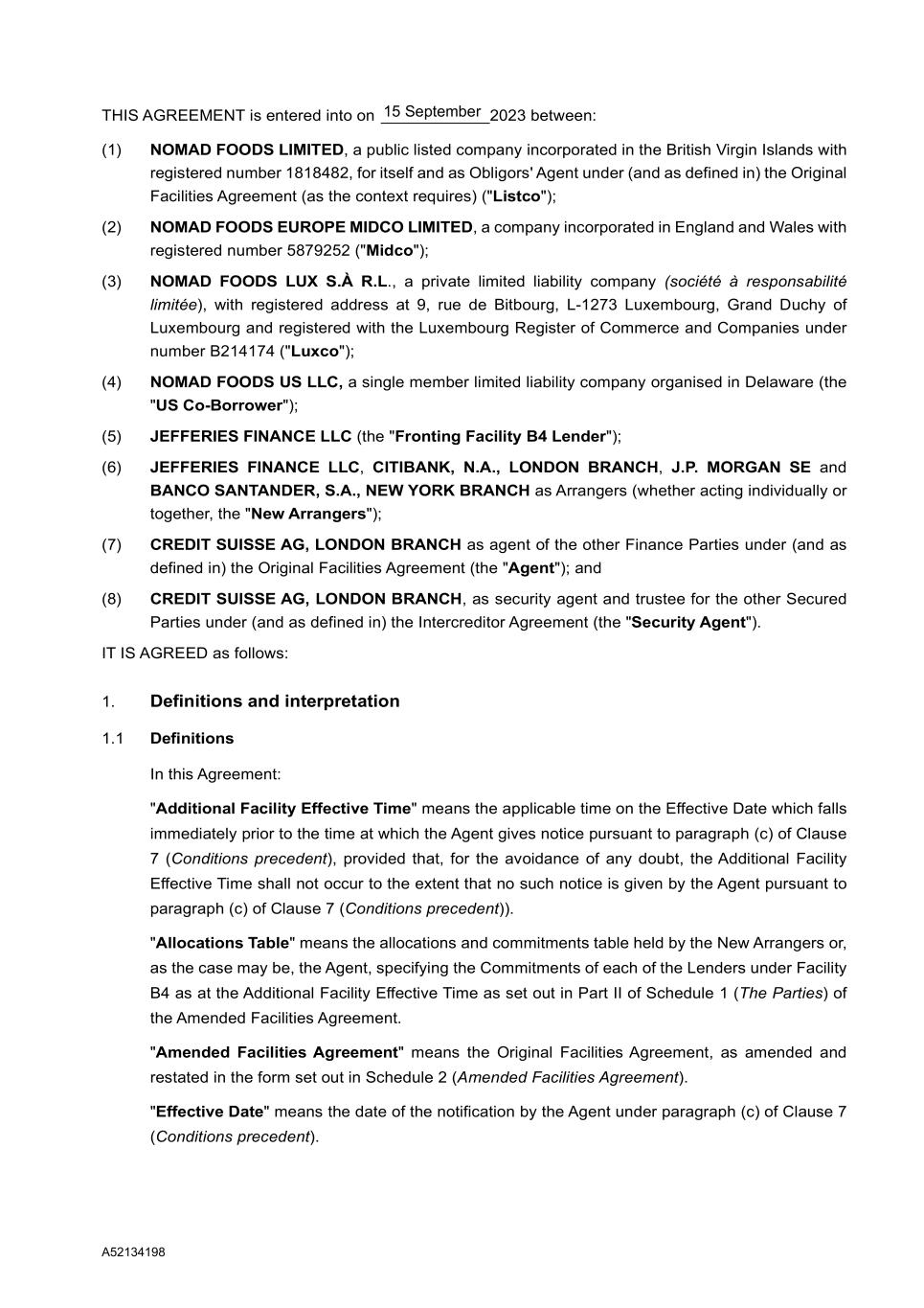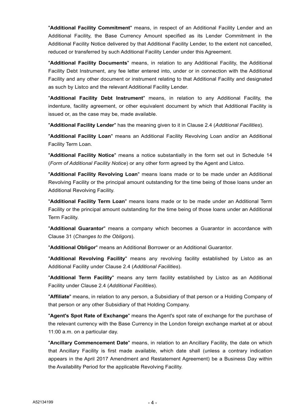 | | Senior Facilities Agreement, originally dated 3 July 2014, as amended and restated from time to time, including pursuant to the Amendment and Restatement Agreement, by, among others, the Company and Credit Suisse AG, London Branch as security agent and agent on behalf of certain other finance parties thereto. |