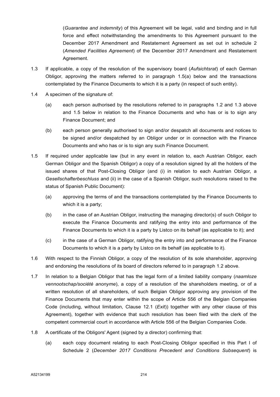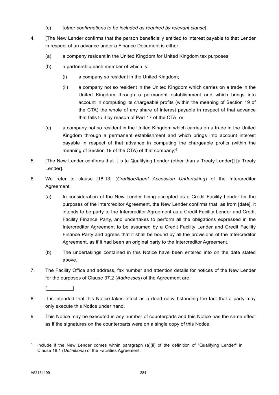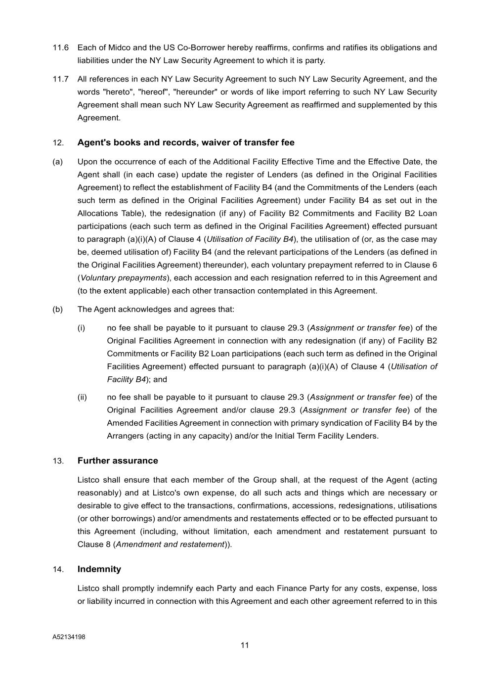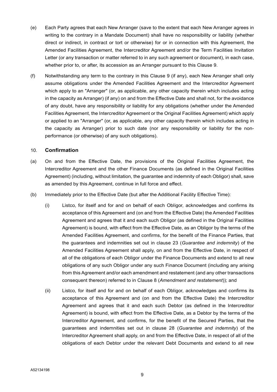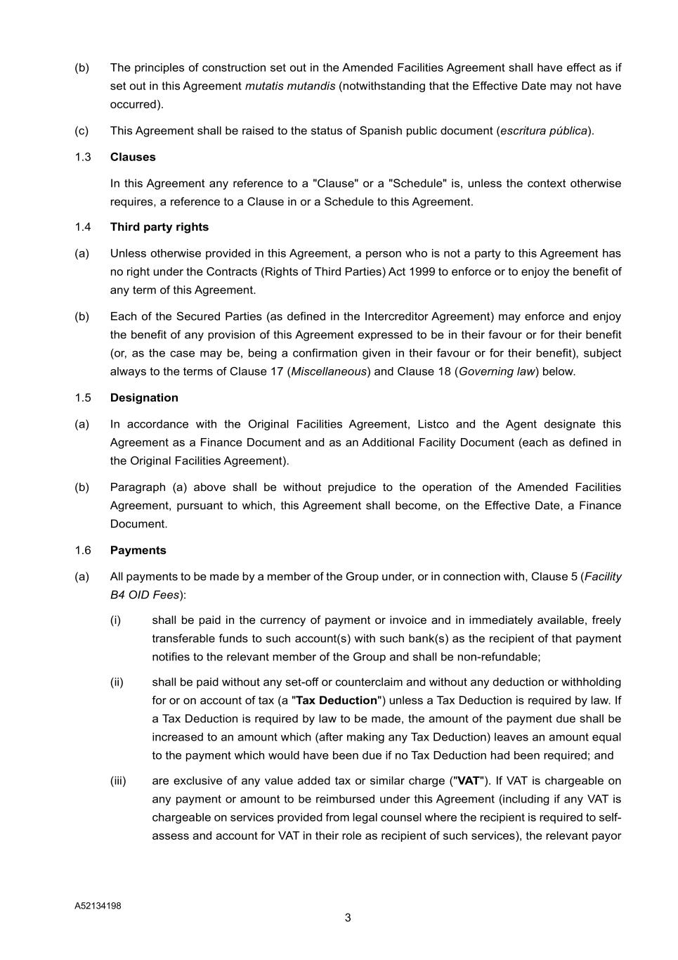 | | Senior Facilities Agreement, originally dated 3 July 2014, as amended and restated from time to time, including pursuant to the Amendment and Restatement Agreement, by, among others, the Company and Credit Suisse AG, London Branch as security agent and agent on behalf of certain other finance parties thereto. |