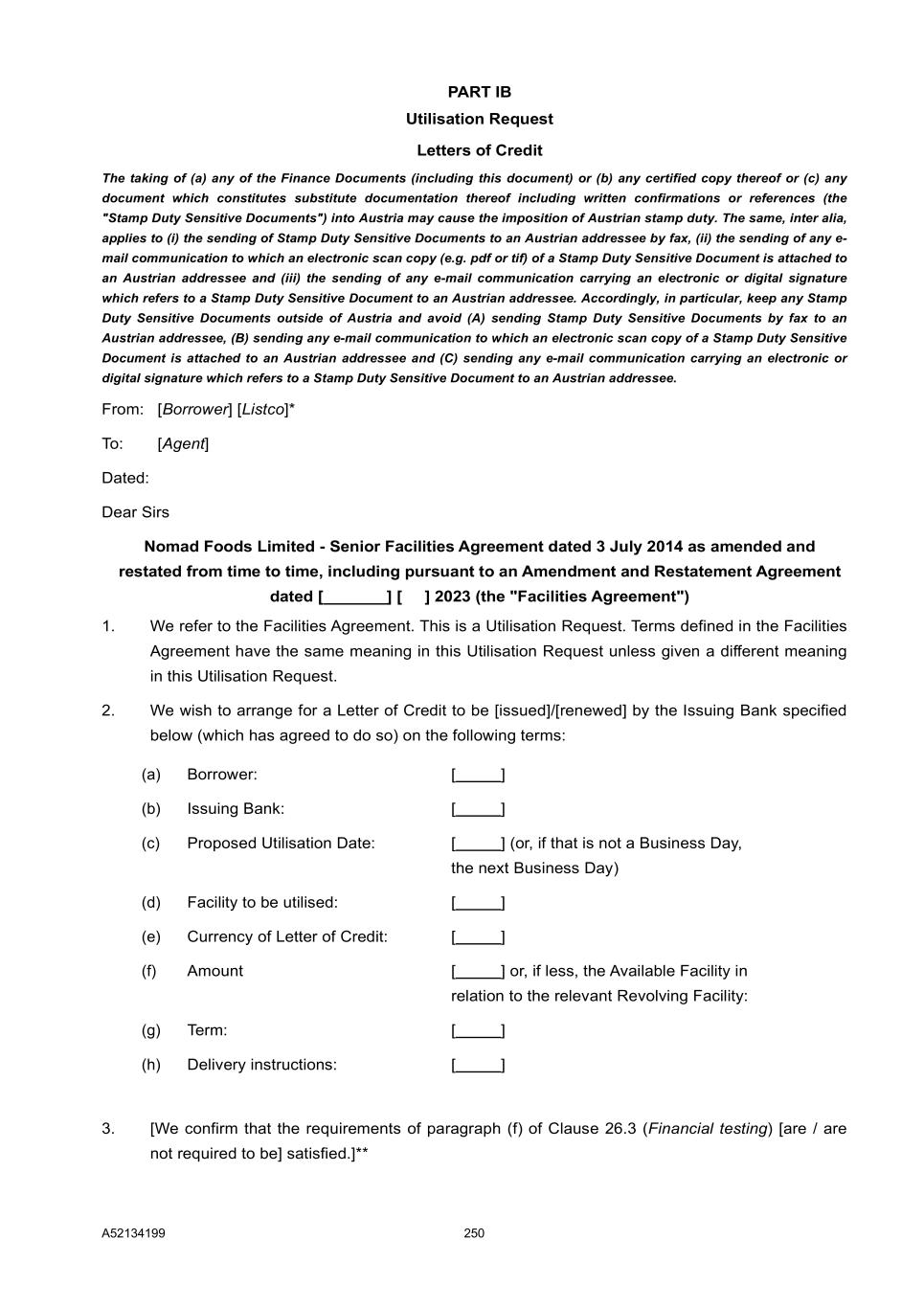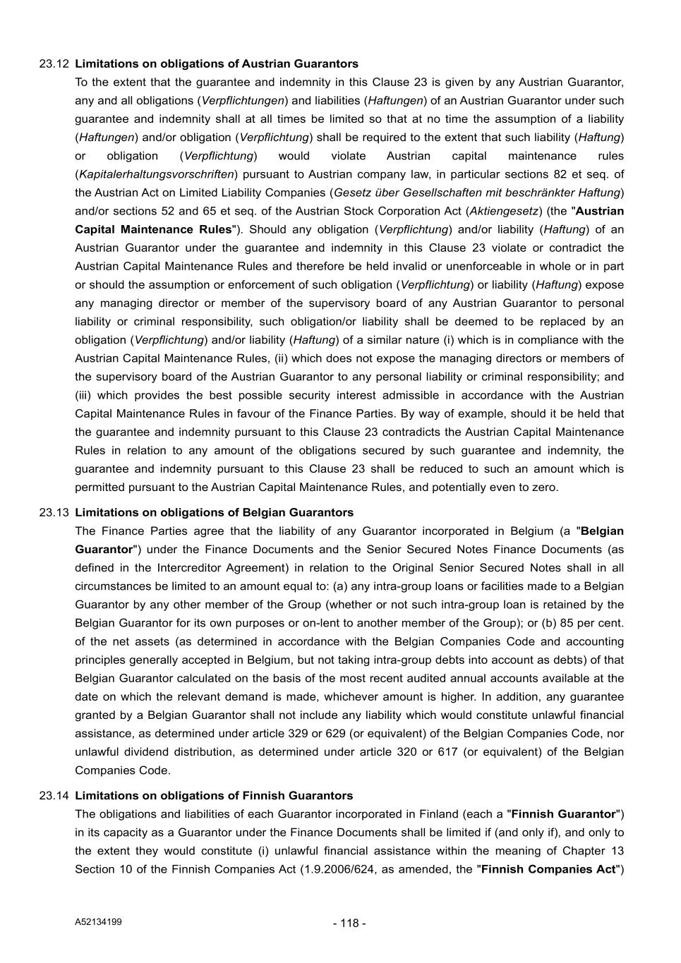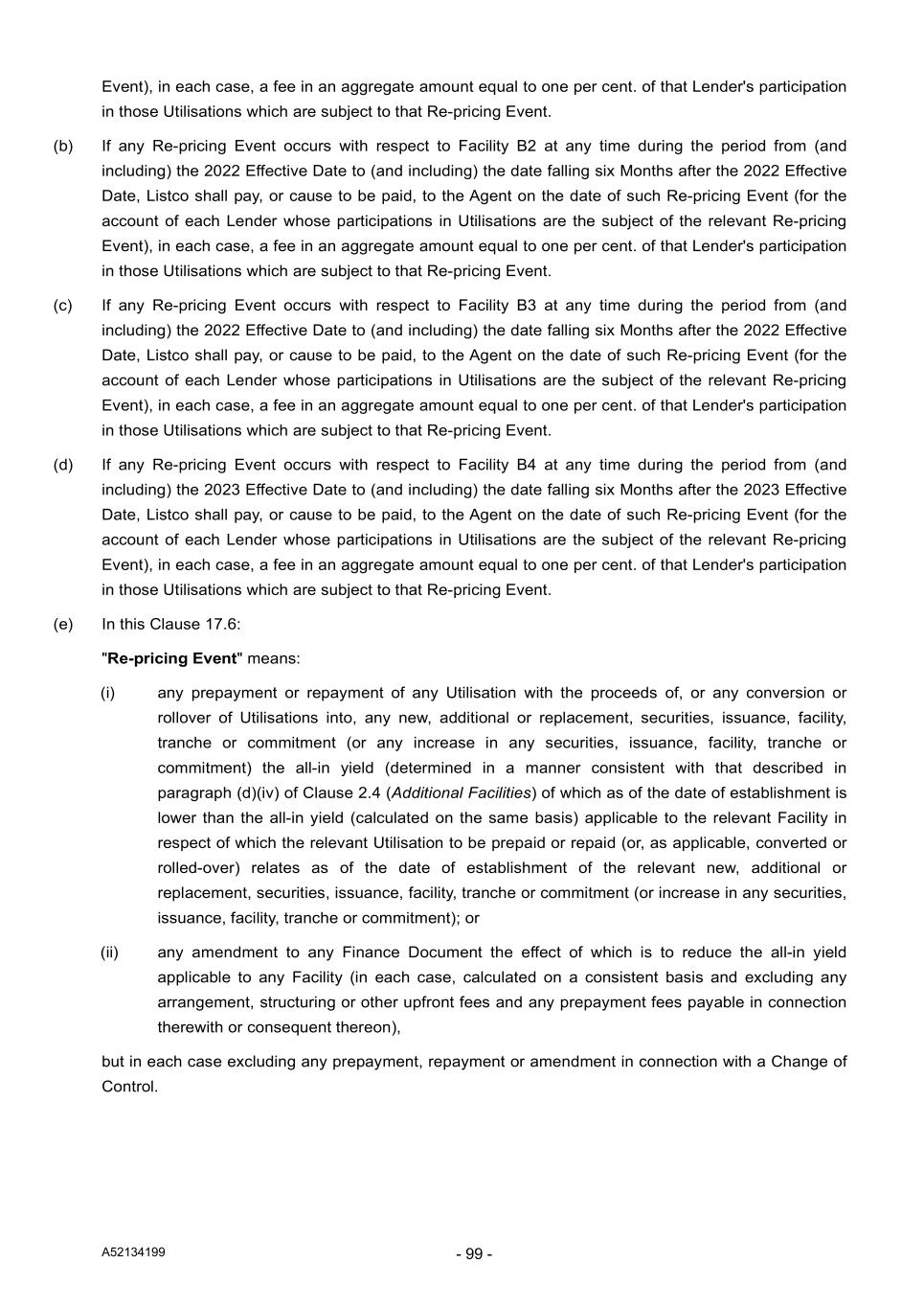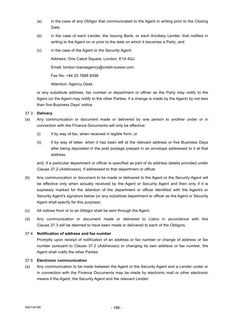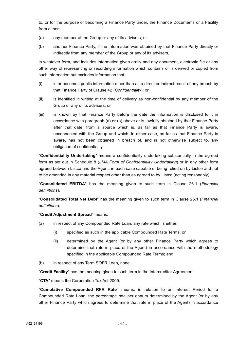 | | Senior Facilities Agreement, originally dated 3 July 2014, as amended and restated from time to time, including pursuant to the Amendment and Restatement Agreement, by, among others, the Company and Credit Suisse AG, London Branch as security agent and agent on behalf of certain other finance parties thereto. |