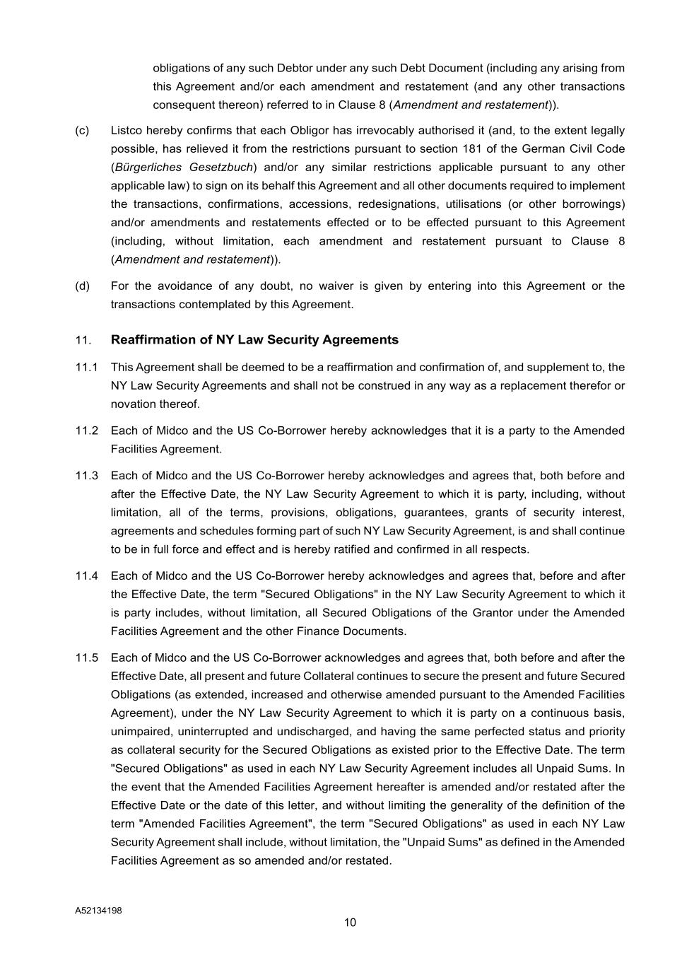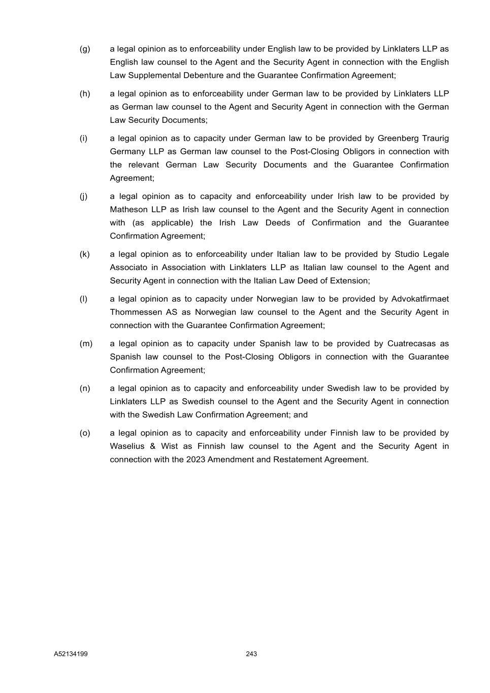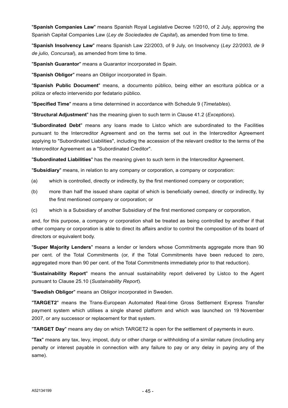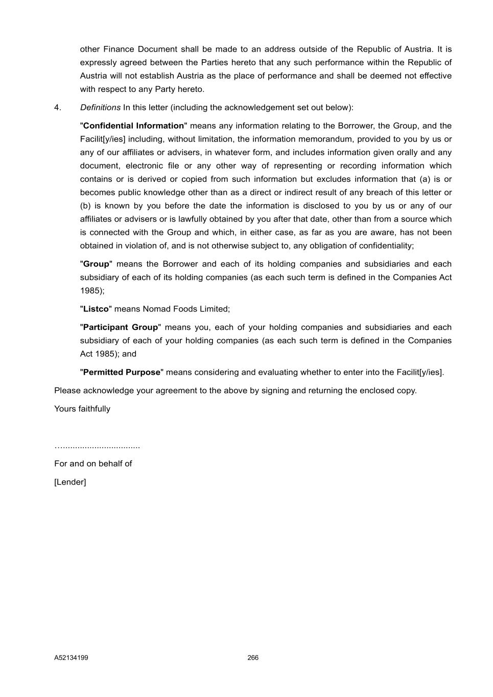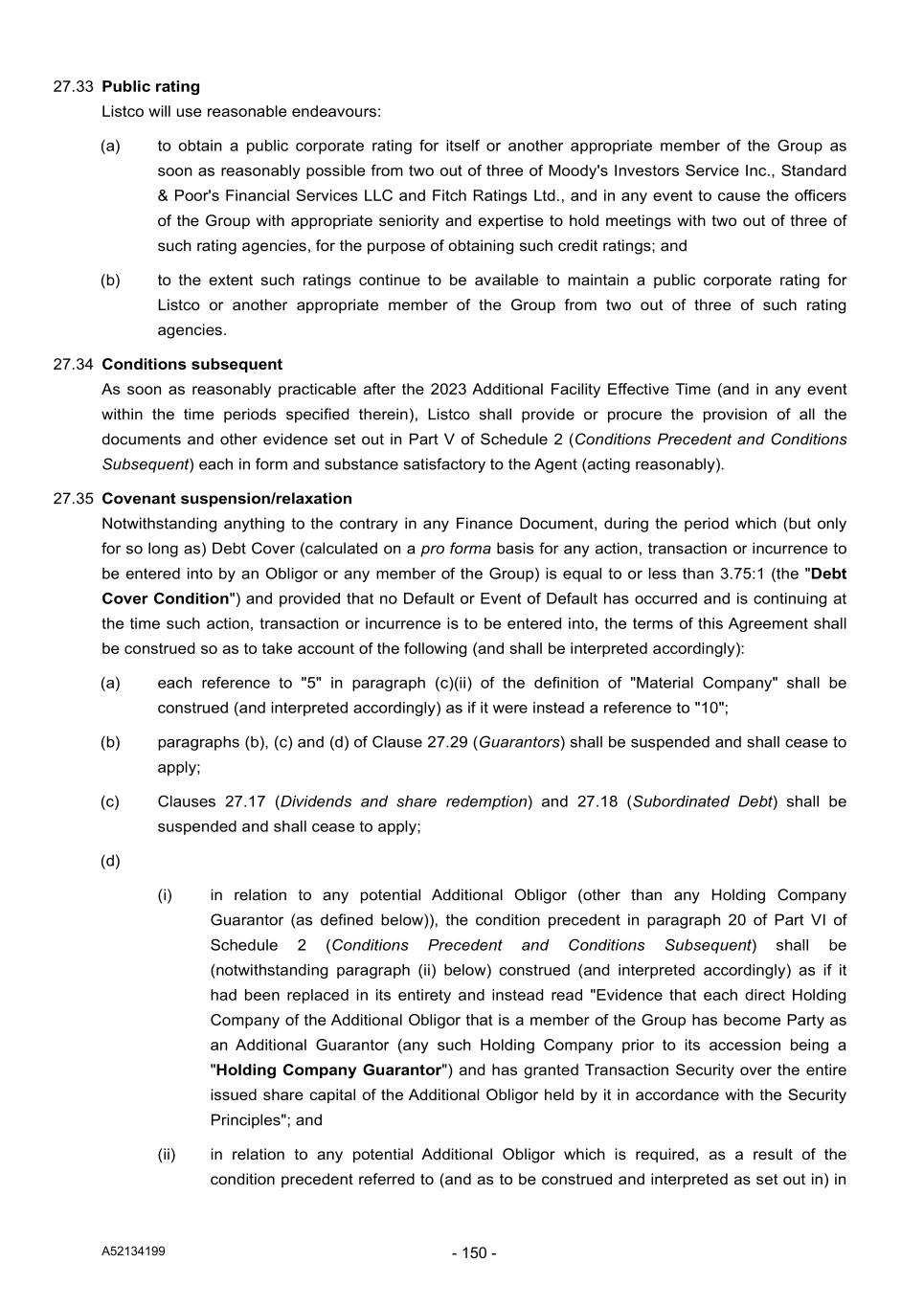 | | Senior Facilities Agreement, originally dated 3 July 2014, as amended and restated from time to time, including pursuant to the Amendment and Restatement Agreement, by, among others, the Company and Credit Suisse AG, London Branch as security agent and agent on behalf of certain other finance parties thereto. |