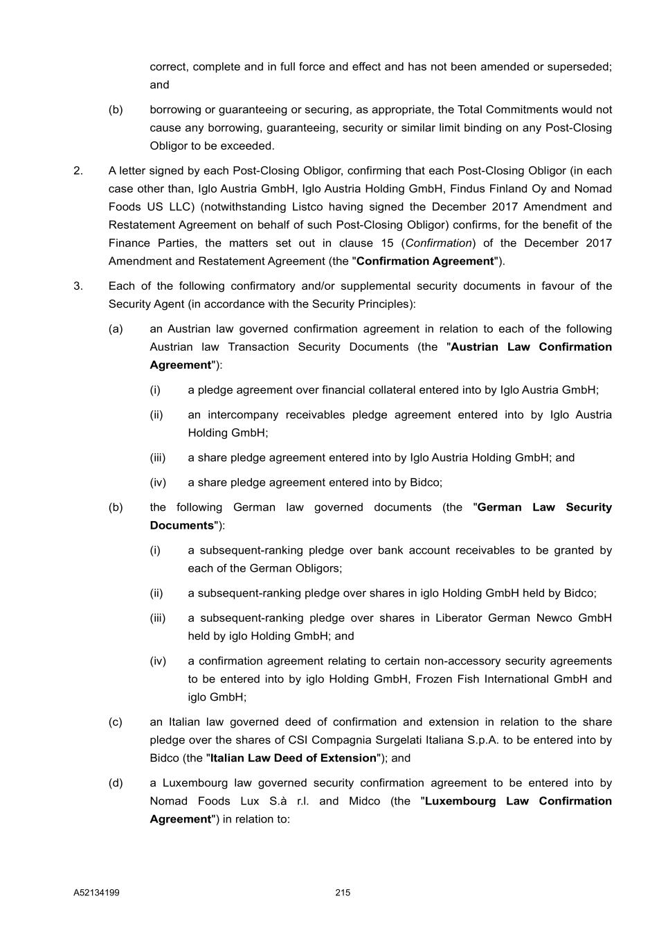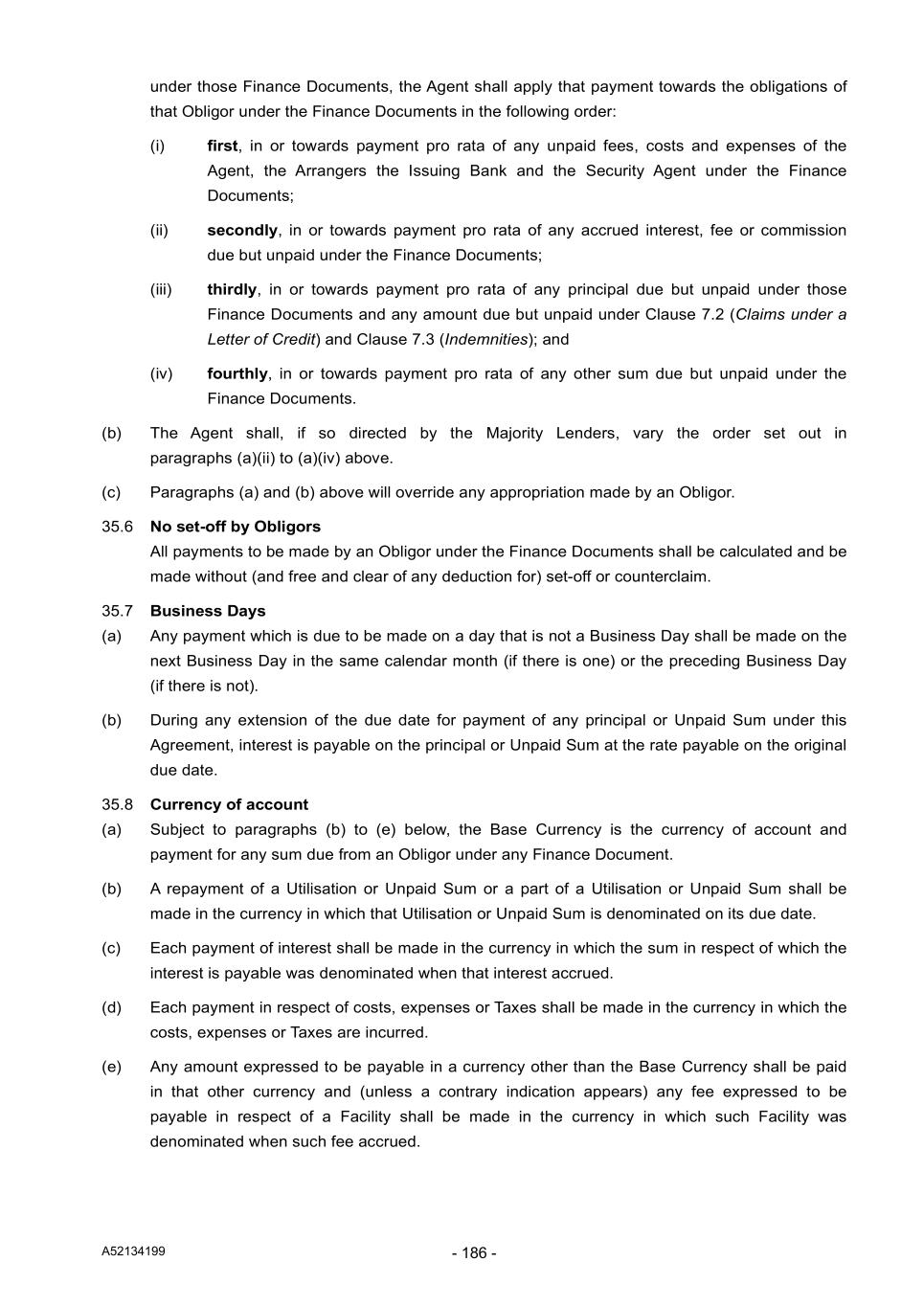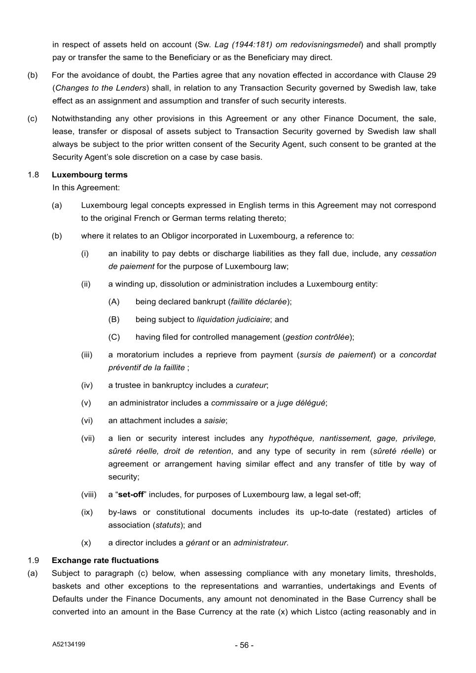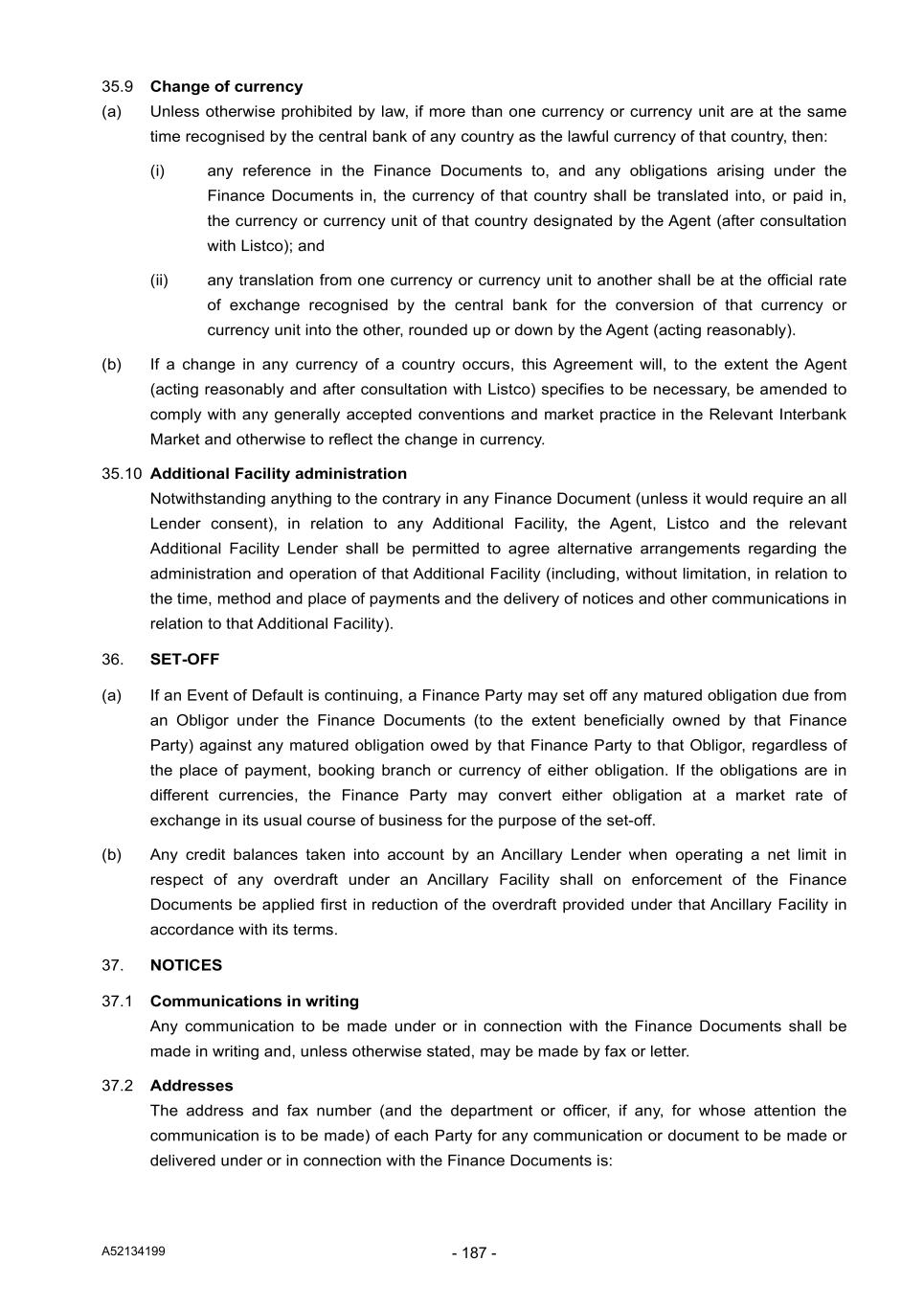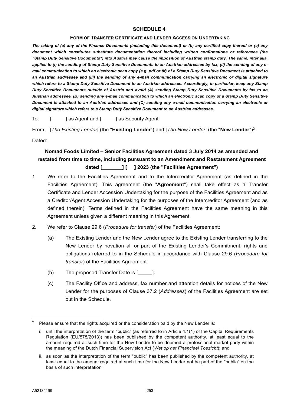 | | Senior Facilities Agreement, originally dated 3 July 2014, as amended and restated from time to time, including pursuant to the Amendment and Restatement Agreement, by, among others, the Company and Credit Suisse AG, London Branch as security agent and agent on behalf of certain other finance parties thereto. |