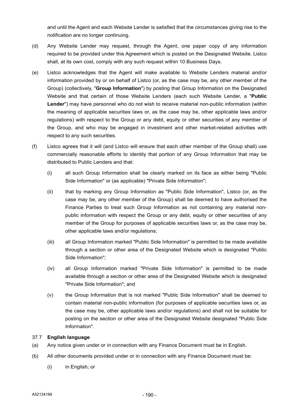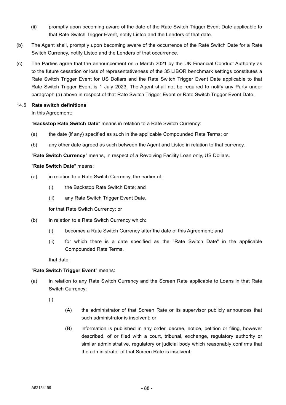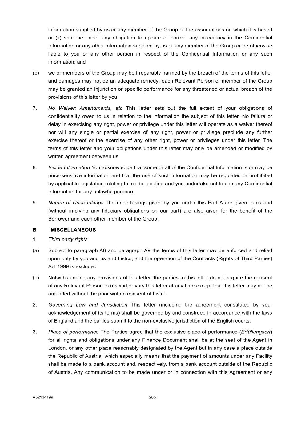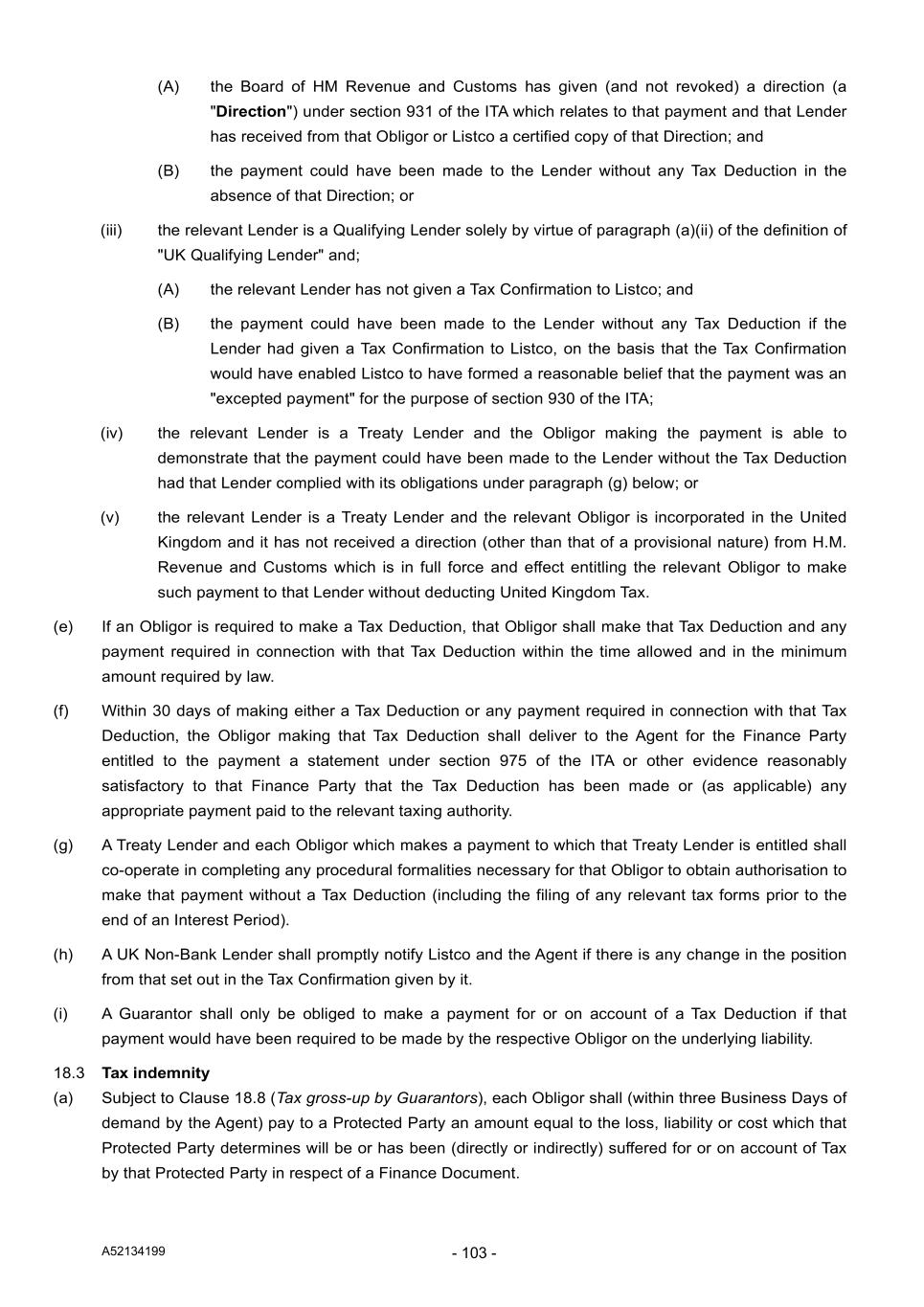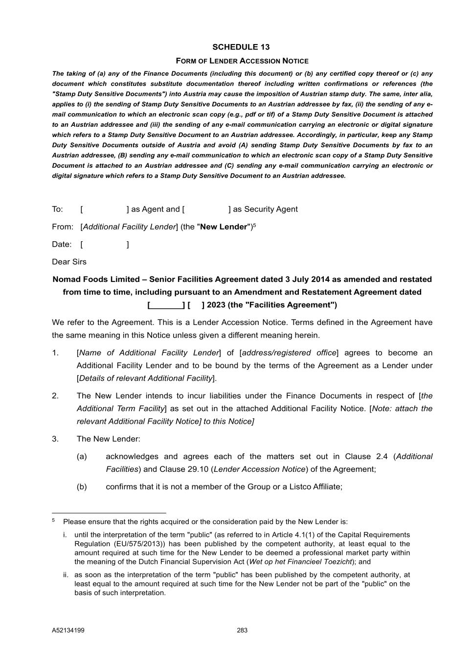 | | Senior Facilities Agreement, originally dated 3 July 2014, as amended and restated from time to time, including pursuant to the Amendment and Restatement Agreement, by, among others, the Company and Credit Suisse AG, London Branch as security agent and agent on behalf of certain other finance parties thereto. |