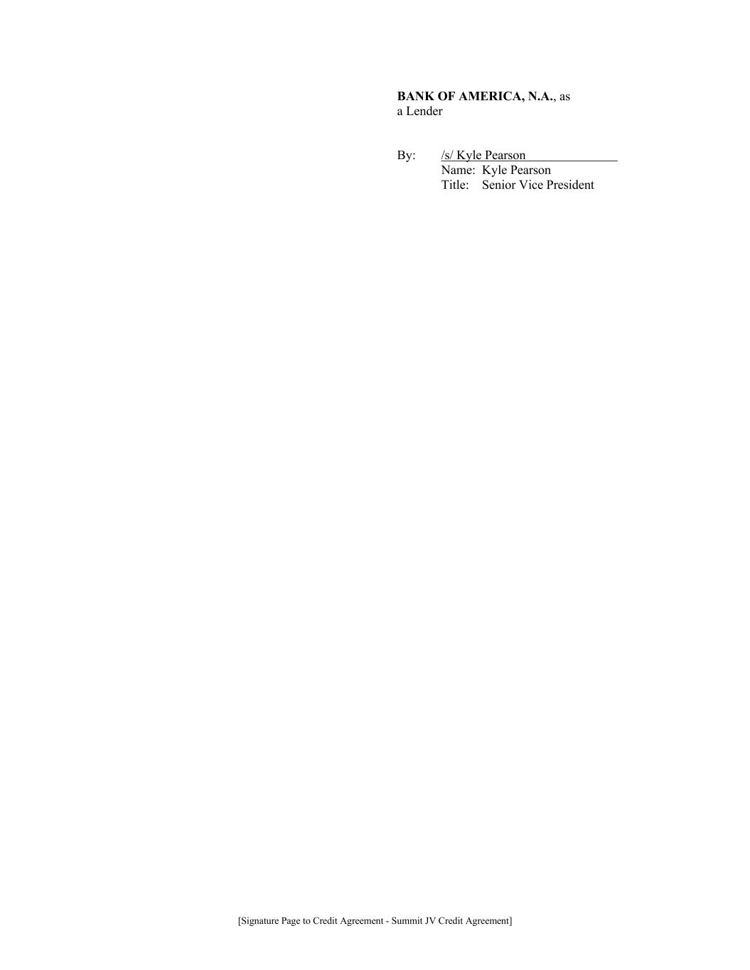 [Signature Page to Credit Agreement - Summit JV Credit Agreement] BANK OF AMERICA, N.A., as a Lender By: /s/ Kyle Pearson Name: Kyle Pearson Title: Senior Vice President