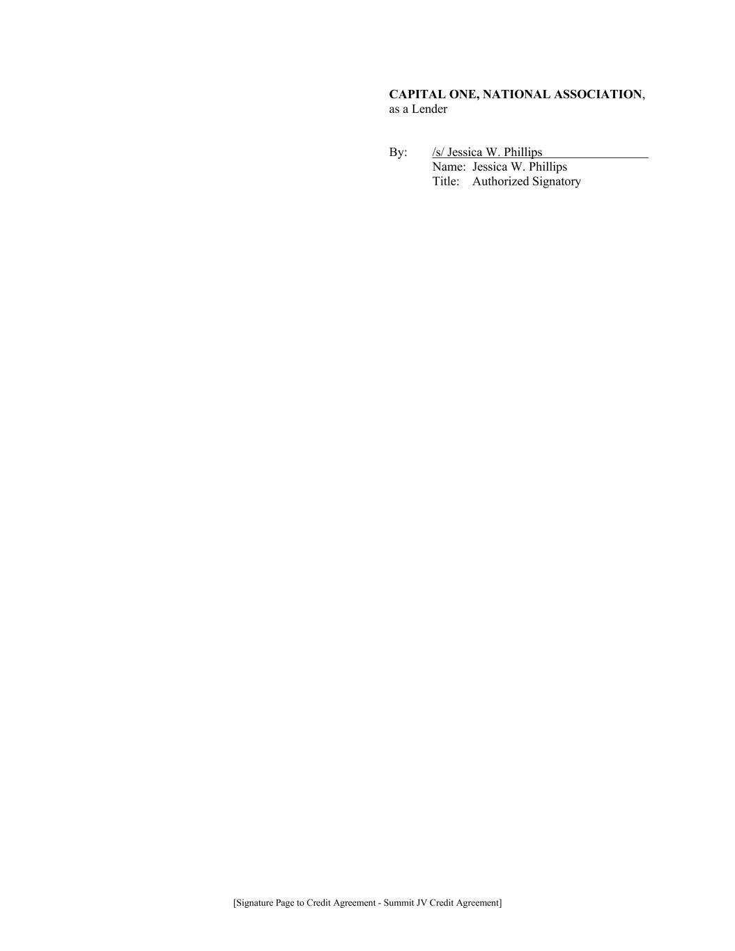 [Signature Page to Credit Agreement - Summit JV Credit Agreement] CAPITAL ONE, NATIONAL ASSOCIATION, as a Lender By: /s/ Jessica W. Phillips Name: Jessica W. Phillips Title: Authorized Signatory