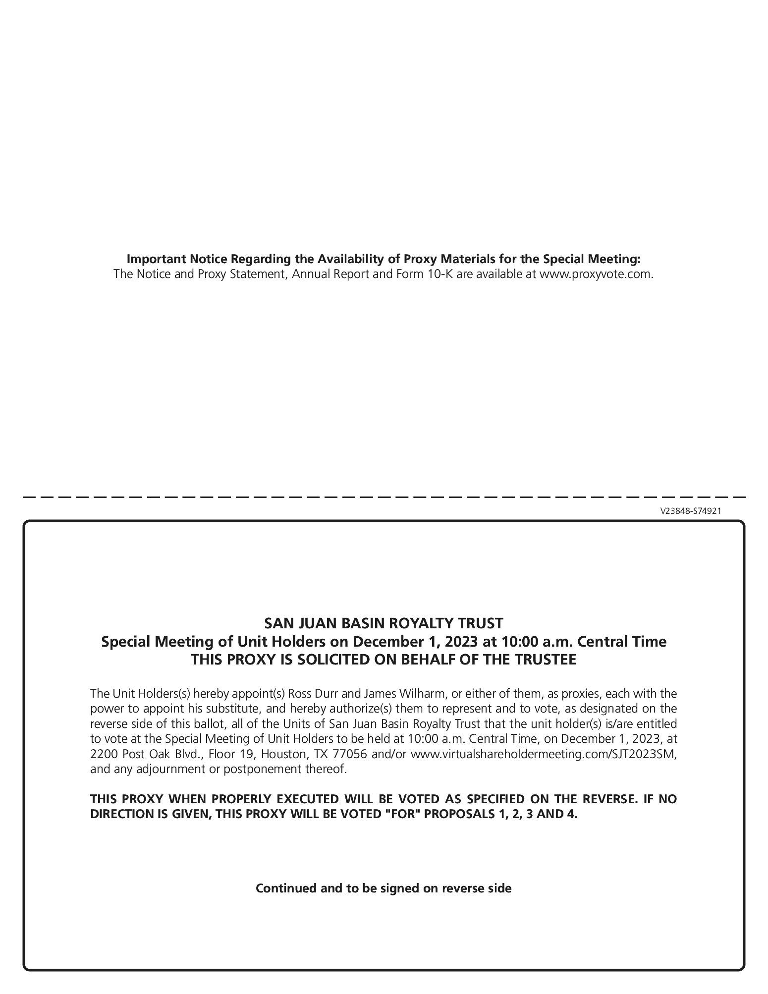 | | | Robert F. Gray, Jr. Mayer Brown LLP 700 Louisiana Street, Suite 3400 Houston, Texas 77002 (713) 238-2600 | | | San Juan Basin Royalty Trust c/o PNC Bank, National Association 2200 Post Oak Blvd., Floor 18 Houston, TX 77056 Attn: Laura Long (412) 762-4283 |