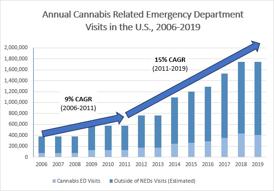 In recent years, hospital emergency rooms across the United States have seen a dramatic increase in patient visits with cannabis-related conditions. Before the legalization of cannabis, an estimated 450,000 patients visited hospital emergency rooms annually for cannabis-related conditions. In 2014, this number more than doubled to an estimated 1.1 million patients, according to data published in “Trends and Related Factors of Cannabis-Associated Emergency Department Visits in the United States: 2006-2014,” Journal of Addiction Medicine (May/June 2019), which provided a national estimate analyzing data from The Nationwide Emergency Department Sample (“NEDS”), the largest database of U.S. hospital-owned emergency department visits. Based on our own analysis of the most recent NEDS data, we believe that the number of emergency department visits grew to 1.7 million patients in 2019 and was growing at an approximately 15% compounded annual growth rate between 2011 and 2019. We believe the number of cannabis-related emergency department visits, including other health problems associated with ACI such as depression, anxiety and mental disorders will continue to increase substantially as more states pass laws legalizing cannabis for medical or recreational use. Given the consequences, there is an urgent need for a treatment to rapidly reverse the symptoms of ACI.