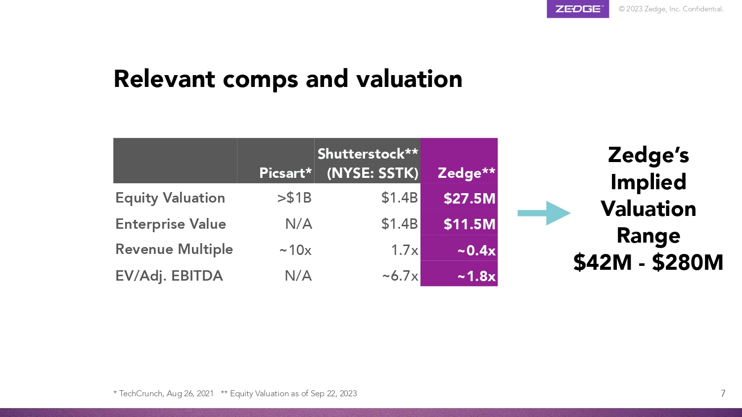 © 2023 Zedge, Inc. Confidential. Relevant comps and valuation 7 Shutterstock** Zedge** (NYSE: SSTK) Picsart* $27.5M $1.4B >$1B Equity Valuation $11.5M $1.4B N/A Enterprise Value ~0.4x 1.7x ~10x Revenue Multiple ~1.8x ~6.7x N/A EV/Adj. EBITDA Zedge’s Implied Valuation Range $42M - $280M * TechCrunch, Aug 26, 2021 ** Equity Valuation as of Sep 22, 2023