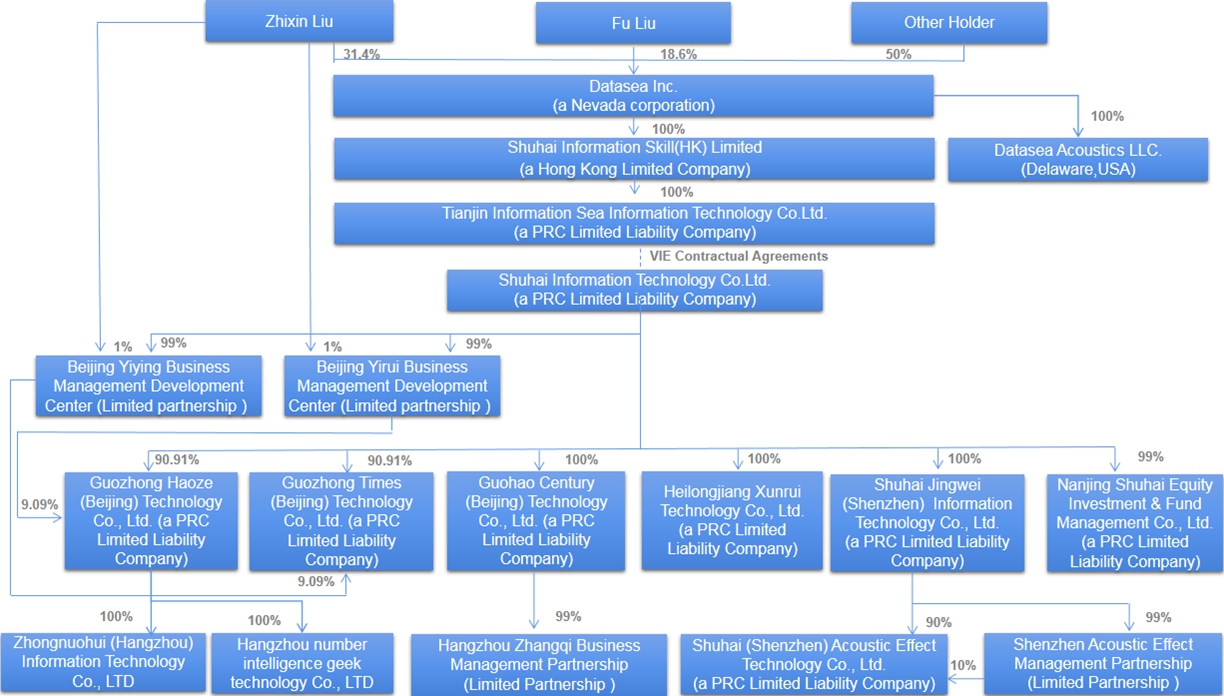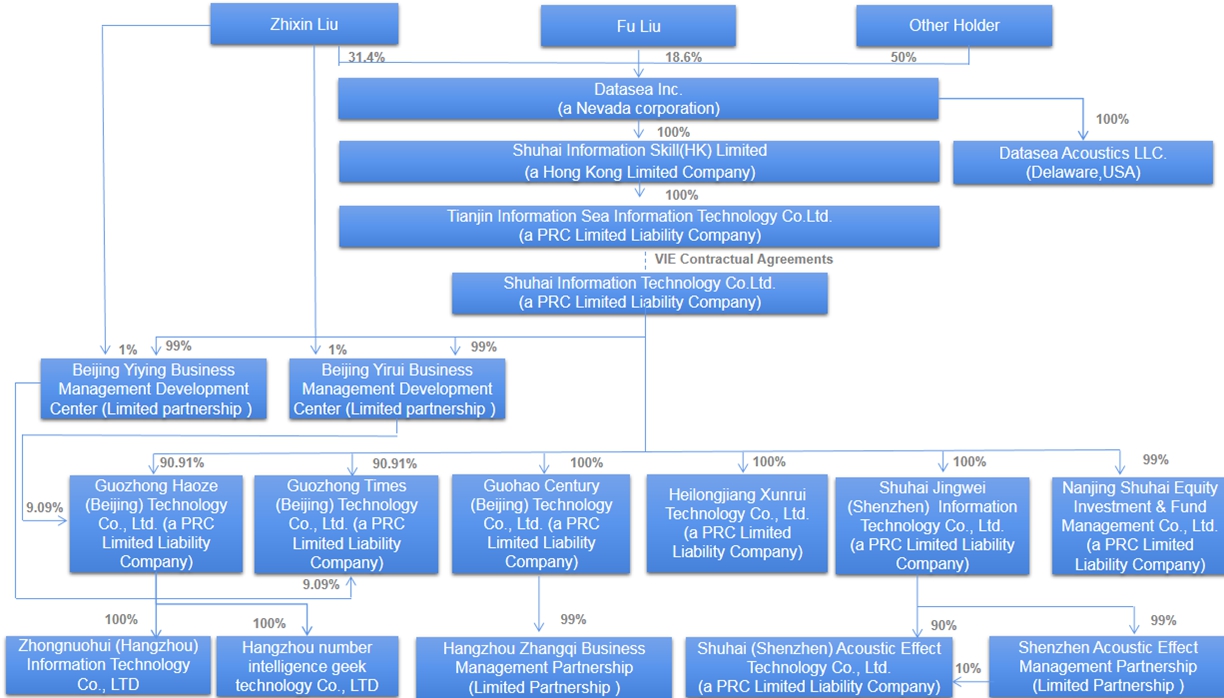 Datasea is not a Chinese operating company but a Nevada-based holding company with its Delaware subsidiary, Datasea Acoustics LLC, serving as our U.S.-based international business platform. Additionally, through the Company’s subsidiary in China – Tianjin Information Sea Information Technology Co., Ltd (“Shuhai Tianjin”) and the VIE, Shuhai Information Technology Co., Ltd. (“Shuhai Beijing”), we carry out business activities in China, along with their subsidiary entities. Shuhai Beijing possesses cutting-edge products and solutions in intelligent acoustics and 5G messaging applications to support commercial enterprises, households and individuals in China.