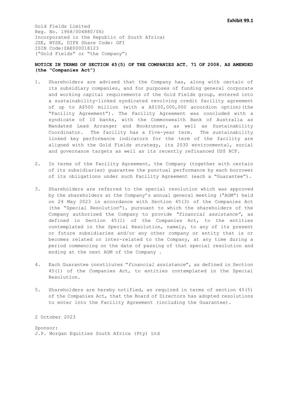 | Gold Fields Limited |