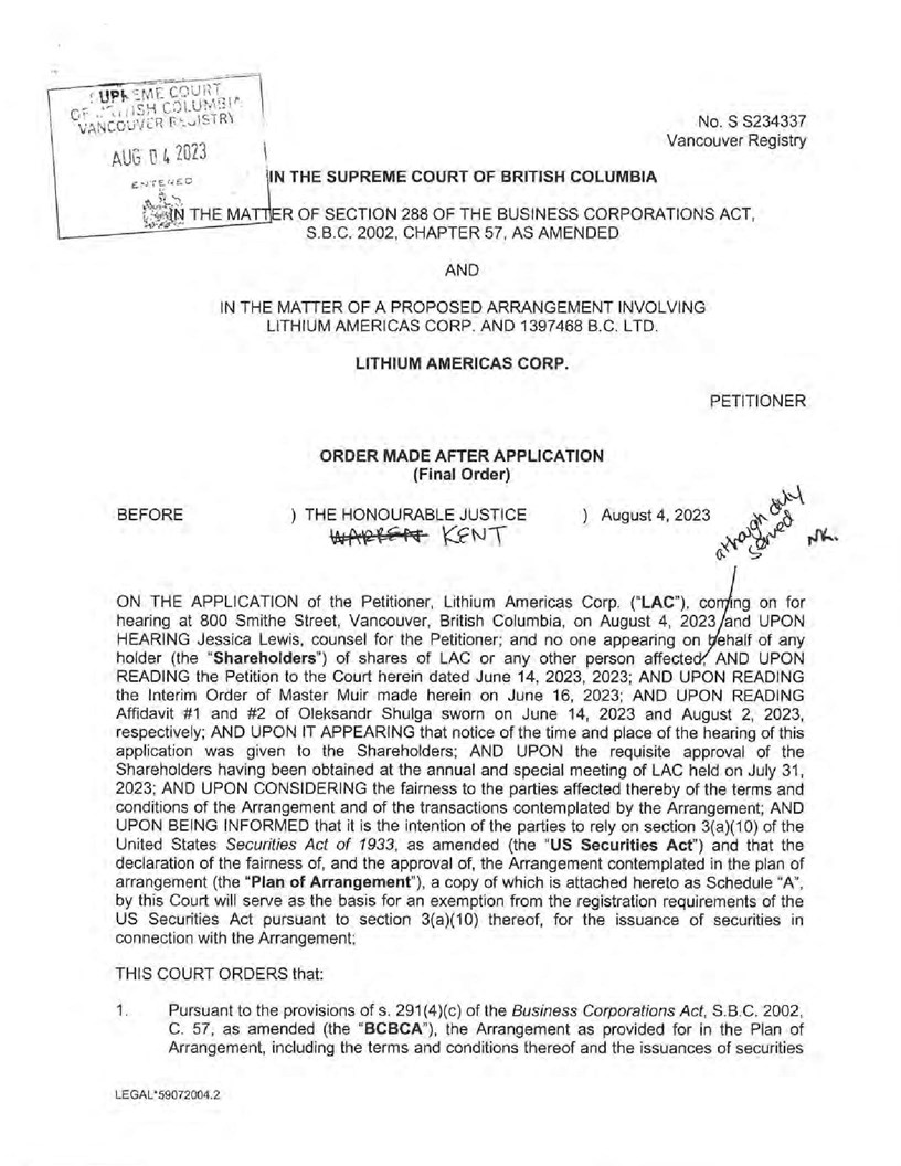 # Portions of this exhibit have been redacted in compliance with Items 601(a)(6) or 601(b) of Regulation S-K. The Company agrees to furnish a copy of any omitted schedule or exhibit to the SEC upon its request.